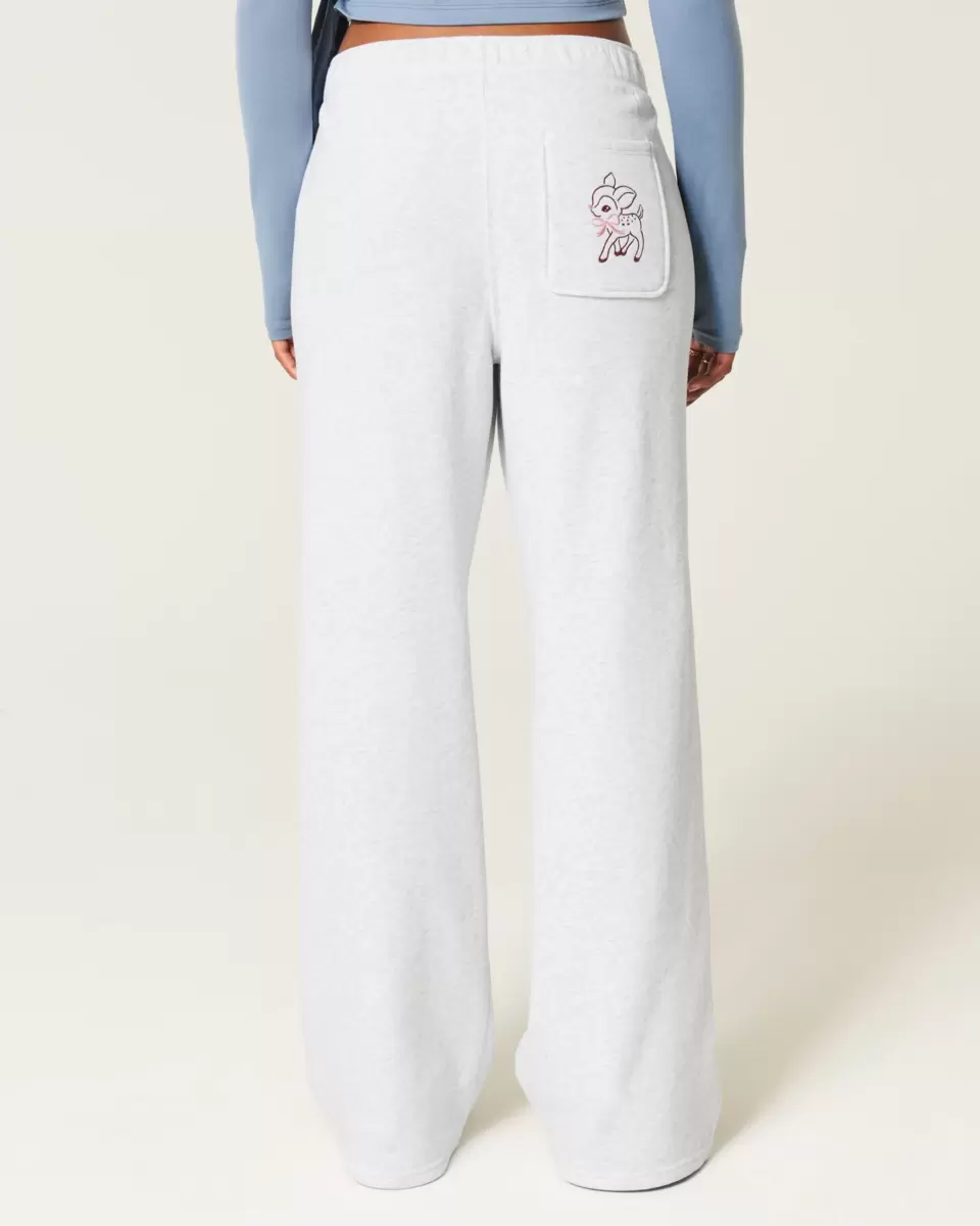 Super soft fleece sweatpants designed with a banded mid-rise waist and wide-leg silhouette. Front pockets, embroidered deer graphic at back pocket. Fold the waistband over to adjust the rise! Imported.