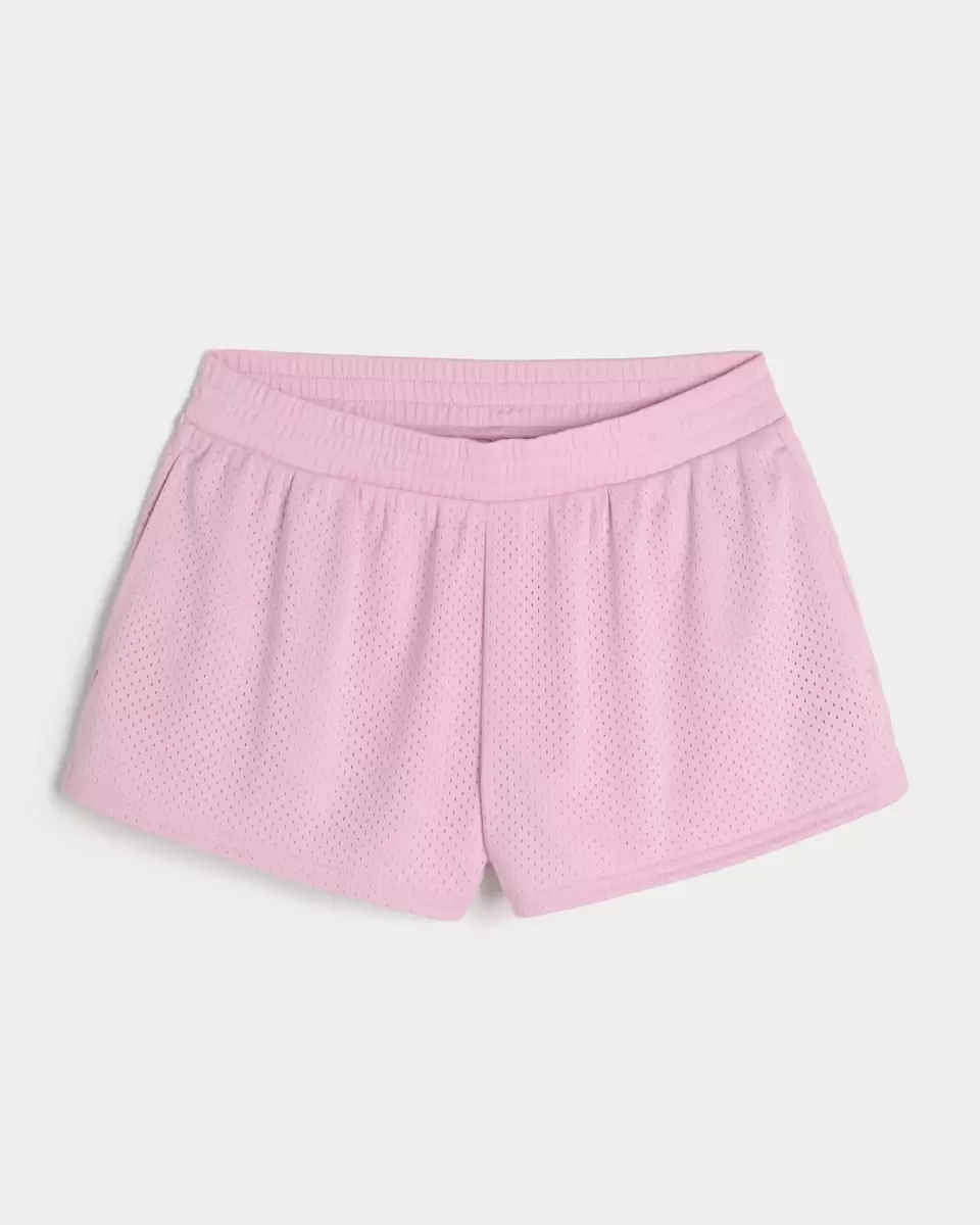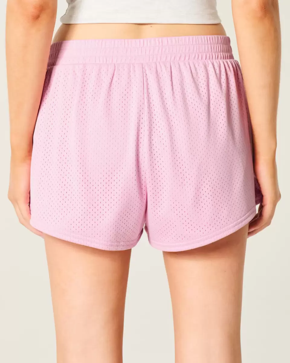 Sporty, soft active shorts in mesh fabric. Banded waist, pockets. Imported.
