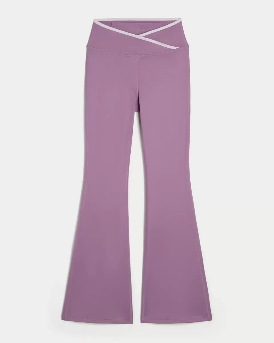 These cute flare pants are designed in our breathable, 4-way stretch, moisture-wicking Recharge fabric with a super soft, brushed feel. Crossover waist with tipped detailing, slim leg with a flared hem. Imported.