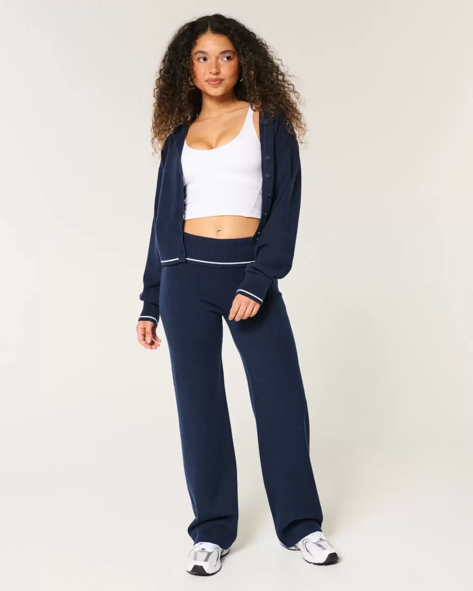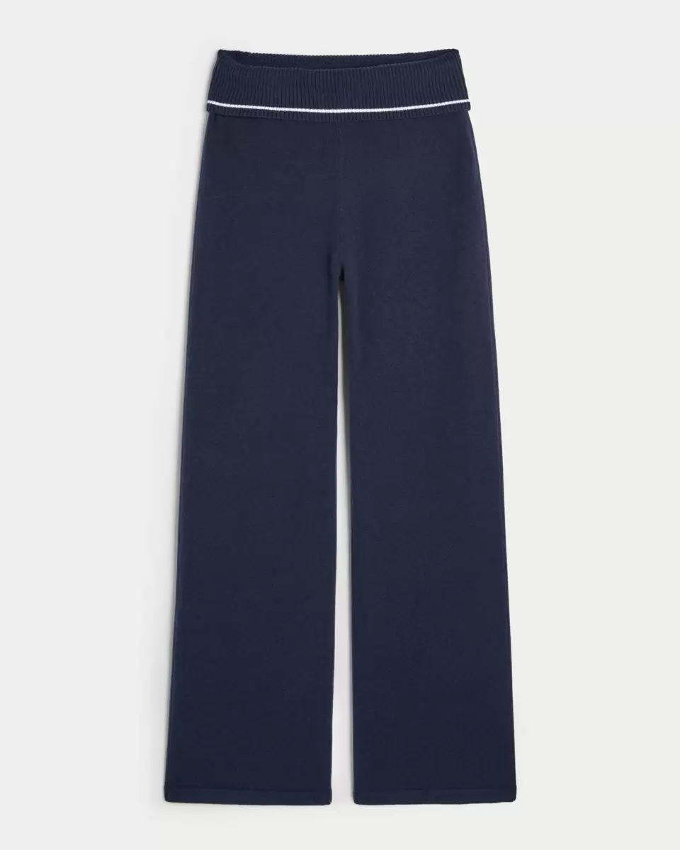 Gilly Hicks Sweater-Knit Foldover Waist Straight Pants