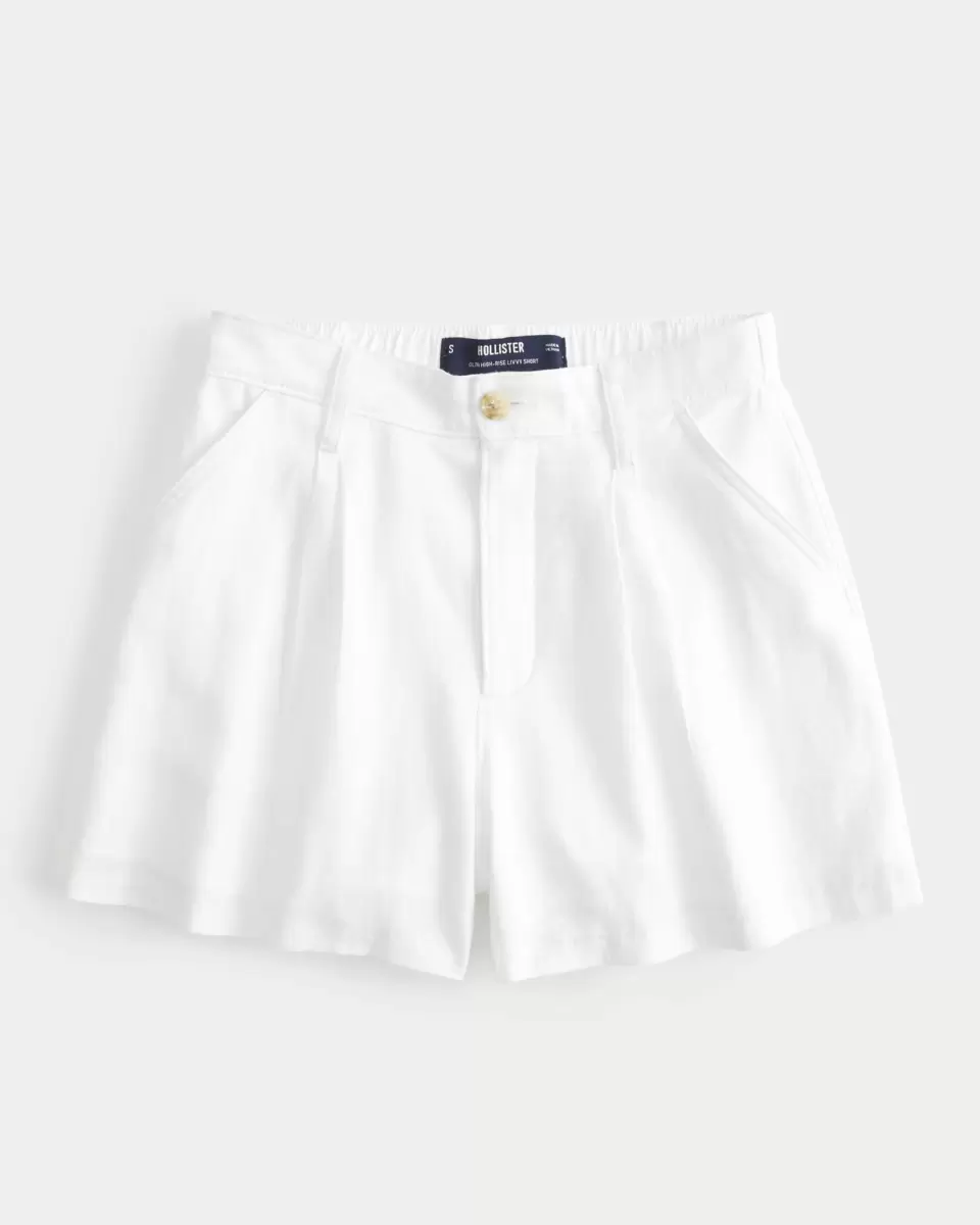 Your new fave shorts are designed with an ultra high-rise waist and pleats for a tailored look. Soft linen blend, pockets, comfort waistband. Imported.