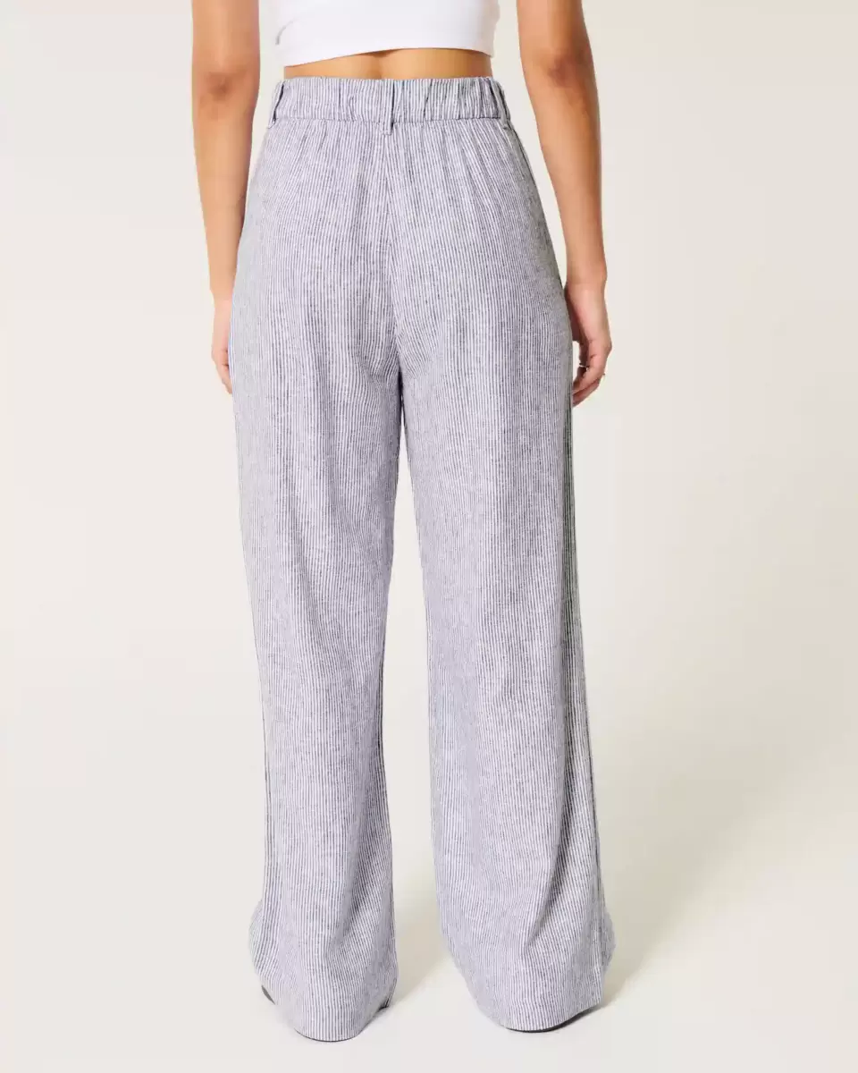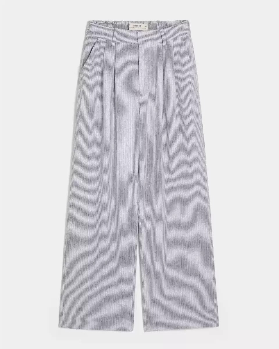 Your new fave pants are designed with a flattering ultra high-rise waist and wide-leg silhouette. Pleated waist for a classic tailored look, pockets. Made with a soft linen blend. Imported.