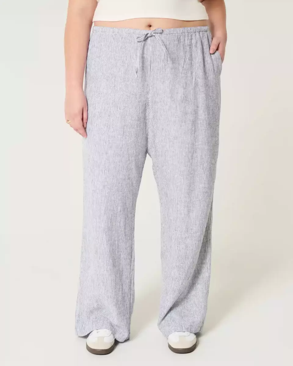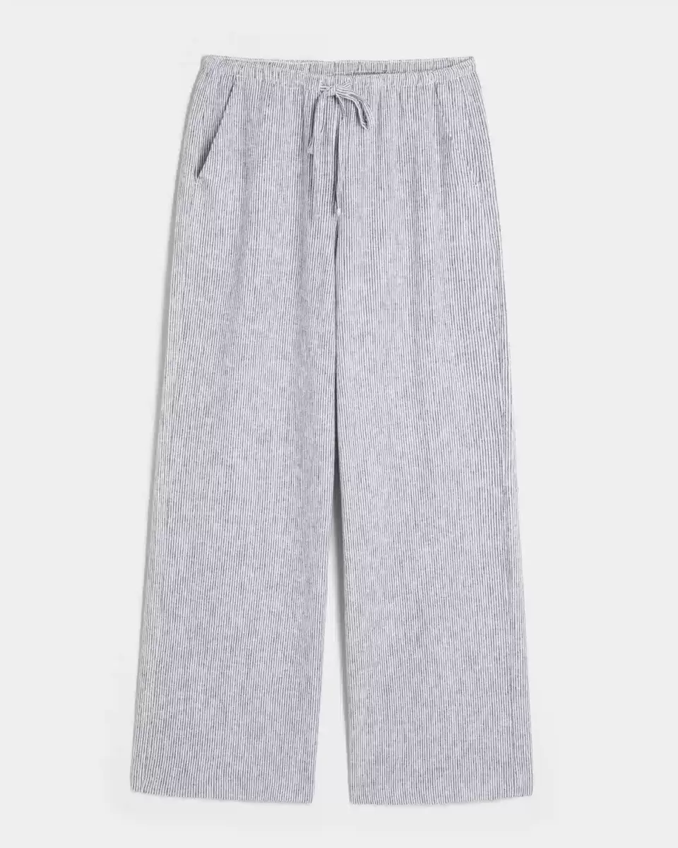 Soft and comfy pants in a linen blend, designed with a baggy leg and pull-on drawstring waist. Pockets. Imported.