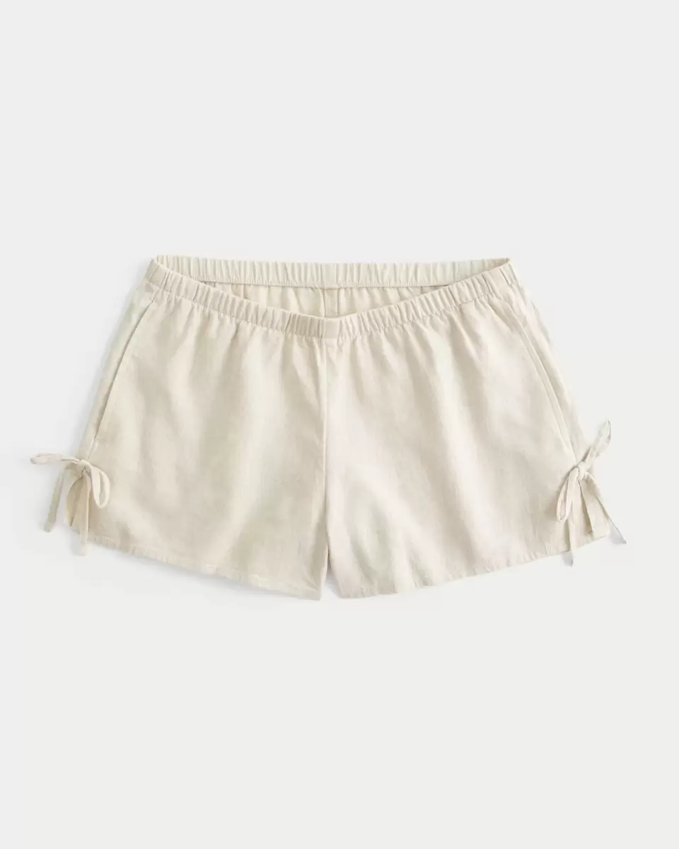 Linen-Blend Side Bow Soft Shorts