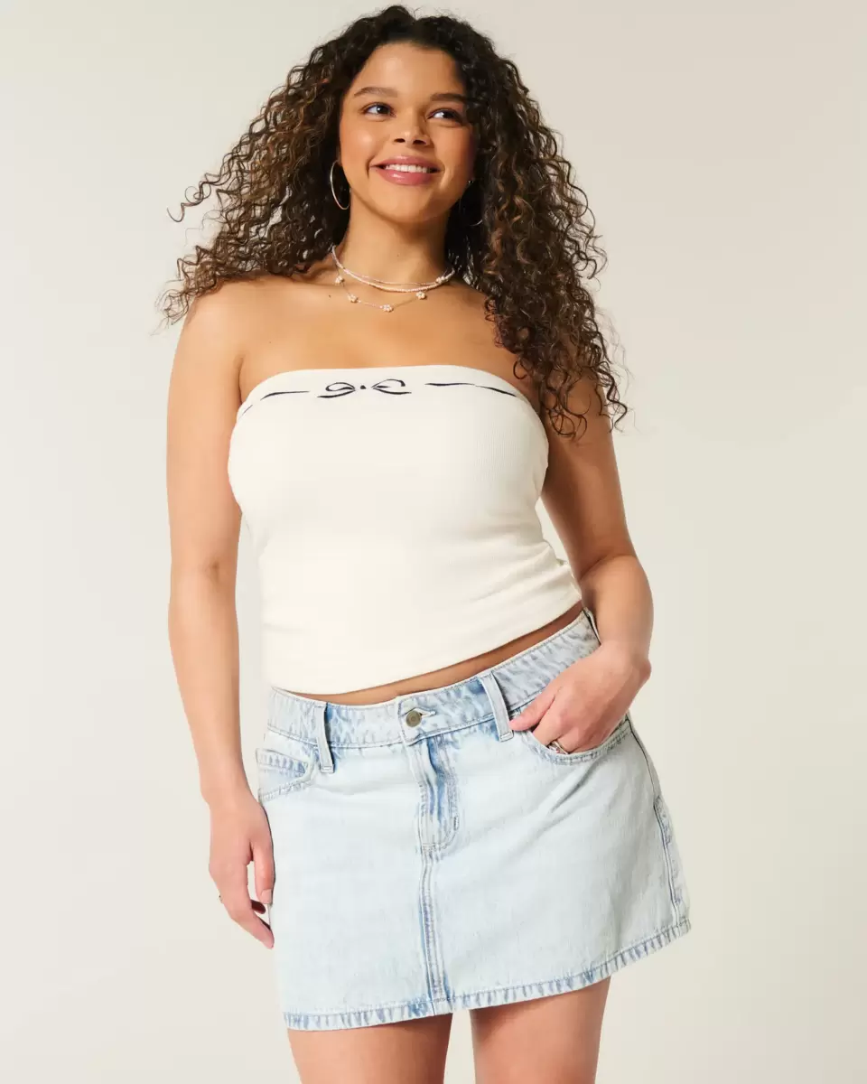 Be the first to review “Low-Rise Light Wash Denim Mini Skort”