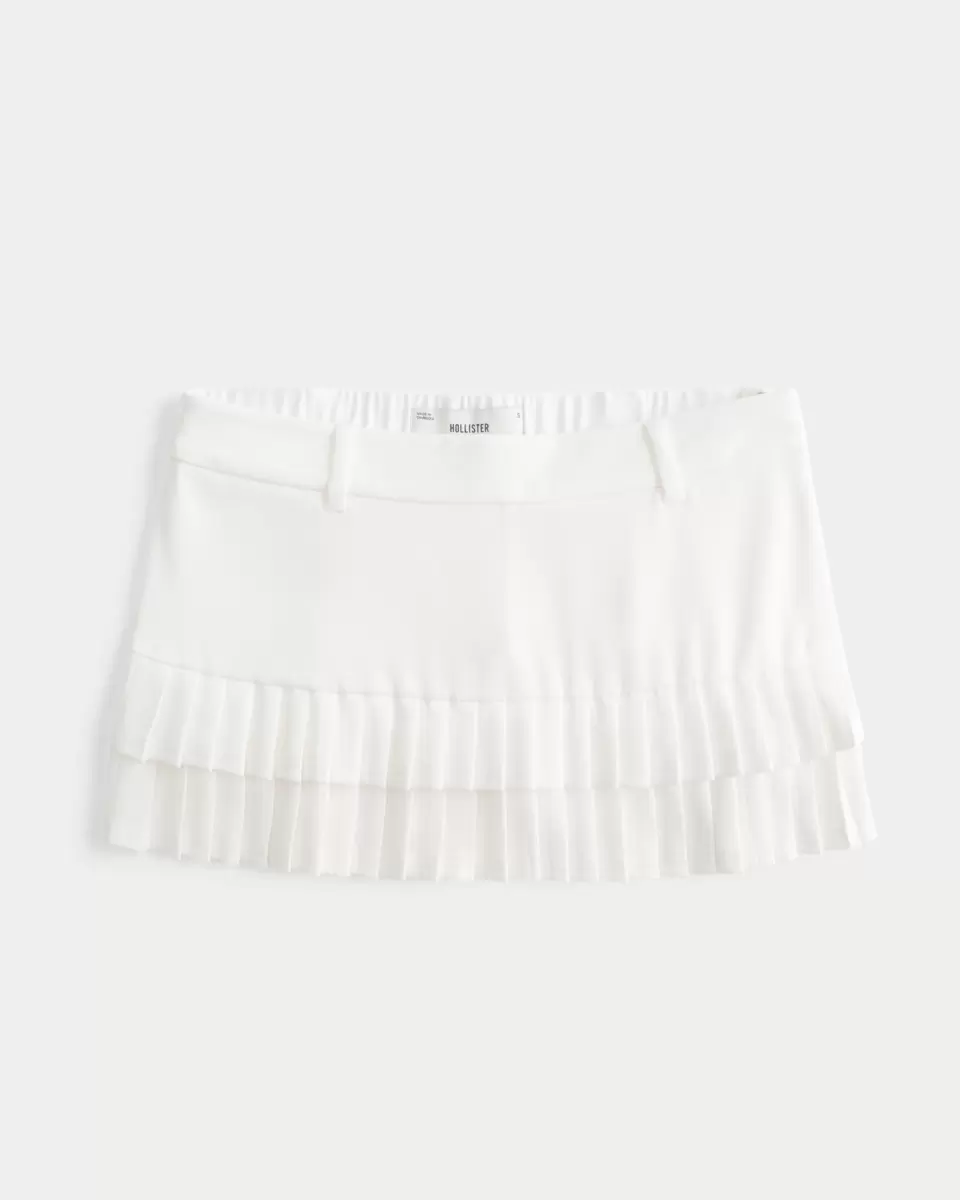 A cute mini skort with a micro-pleated hem and hidden knit shorts. Belt loops, low-rise waist. Imported.