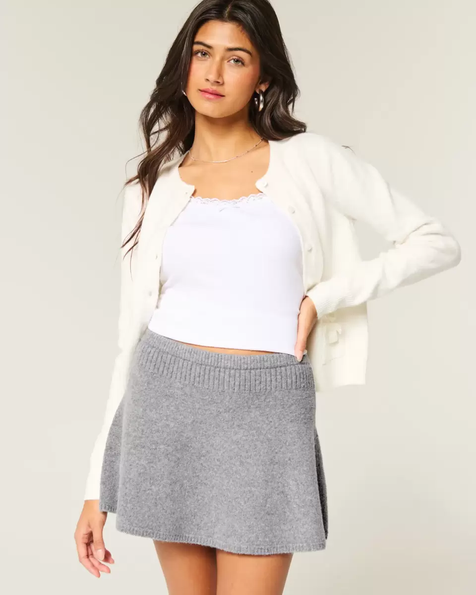 This cute mini skirt is designed with a classic circle-cut silhouette and ribbed mid-rise waist. Imported.