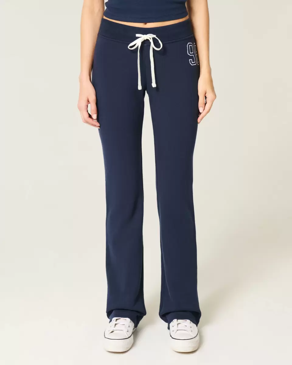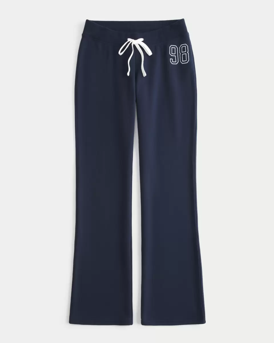 Super soft fleece sweatpants designed with a slim leg and boot hem. Low-rise drawstring waist, embroidered number graphic.
