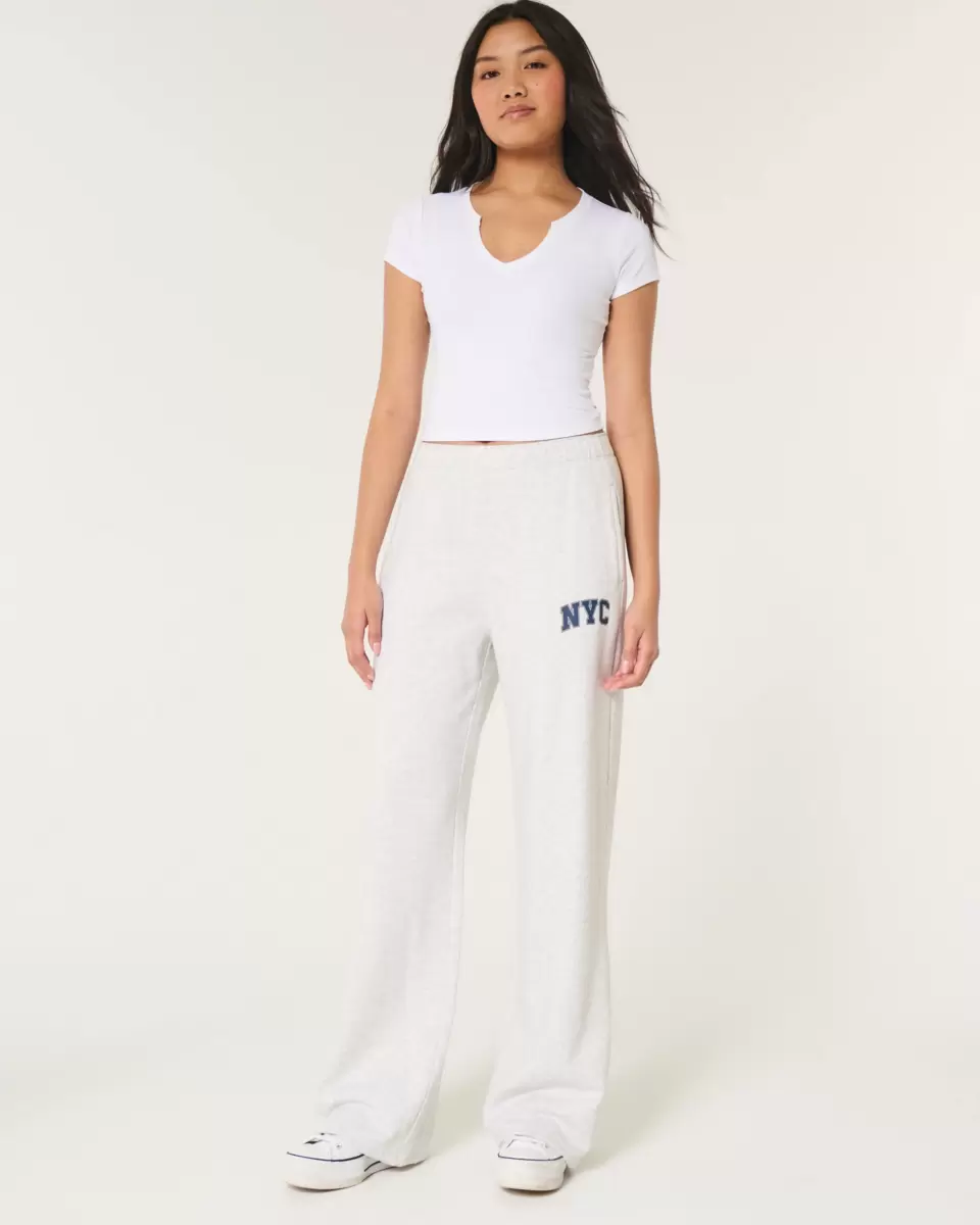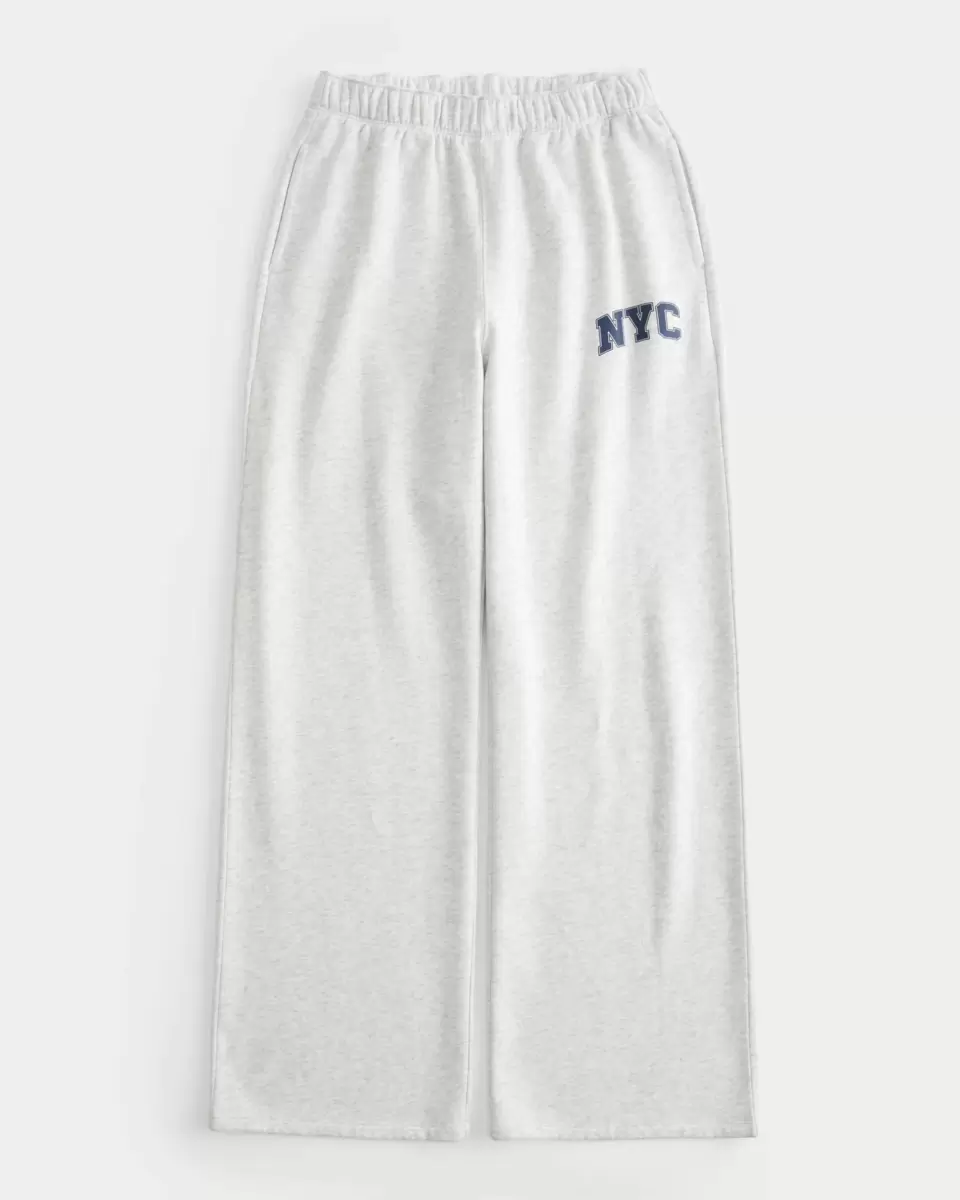 Super soft fleece pants an NYC print graphic, soft banded waist and pockets. Wide-leg pants. Imported.