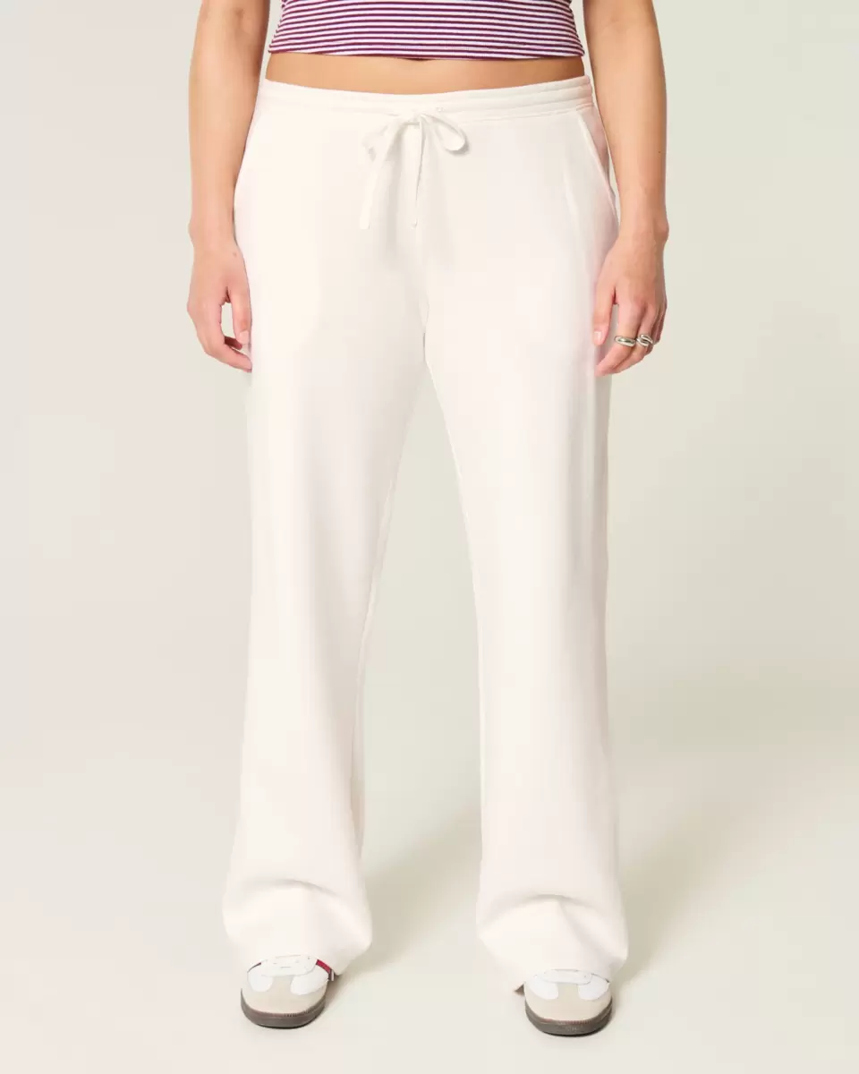 Super soft fleece sweatpants with a straight leg fit and mid-rise waist. Pockets, drawstring waistband.