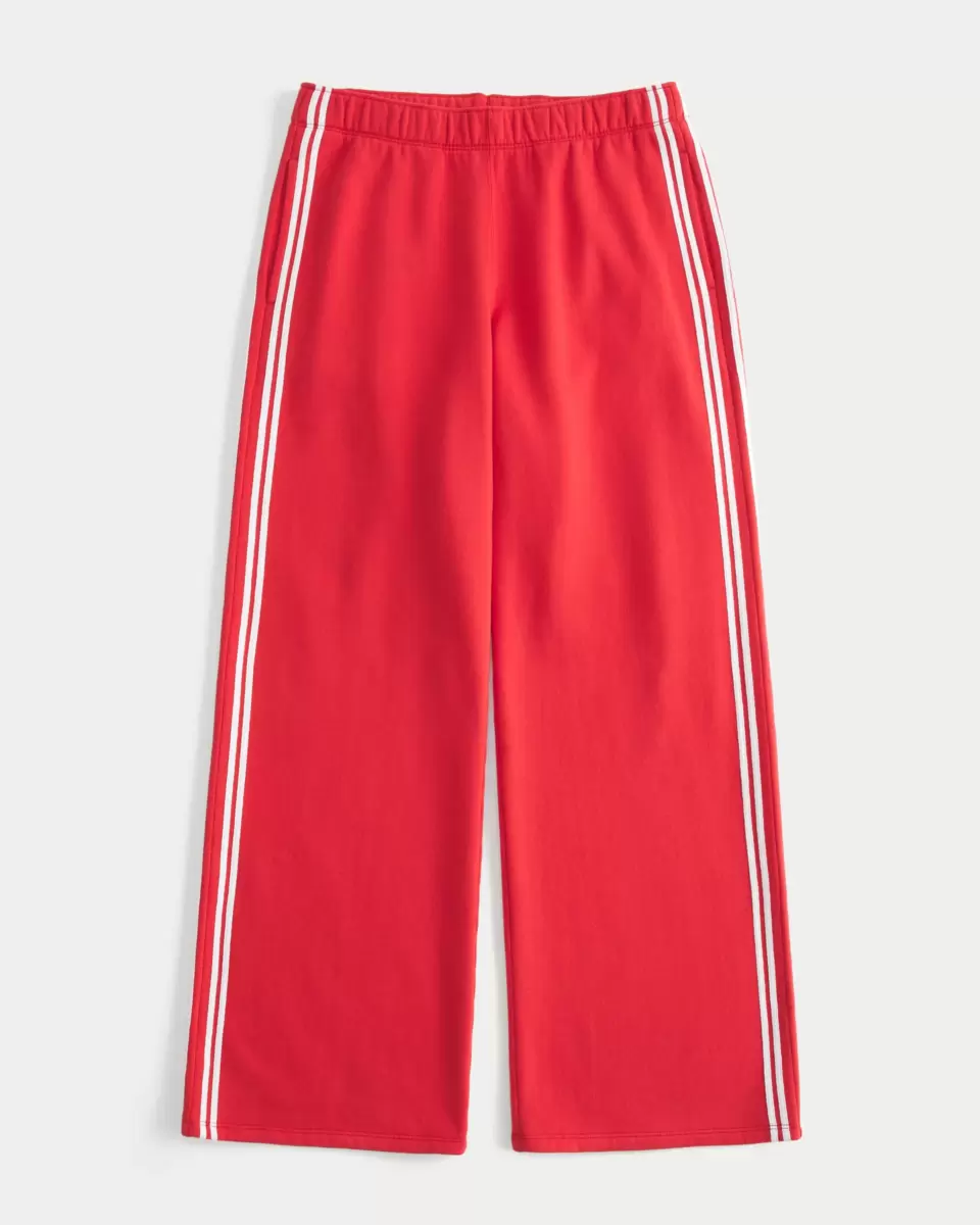 Super soft fleece sweatpants designed with a wide-leg silhouette and banded waist. Sporty side stripes. Imported.