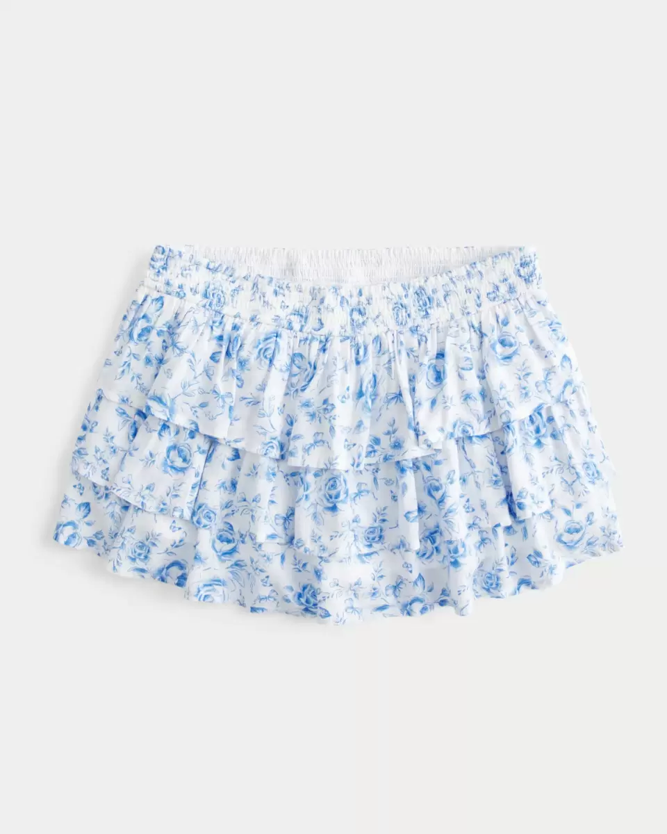 Cute and super soft, this mini skort features hidden shorts and ruffled tiers. Soft banded waist, pockets, low-rise waist. Imported.
