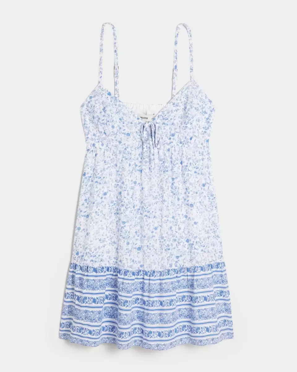 This soft and flowy mini dress is designed with a cute babydoll silhouette and features a bra-covering back detail and pockets. V-neckline with tie detail, adjustable straps. Imported.