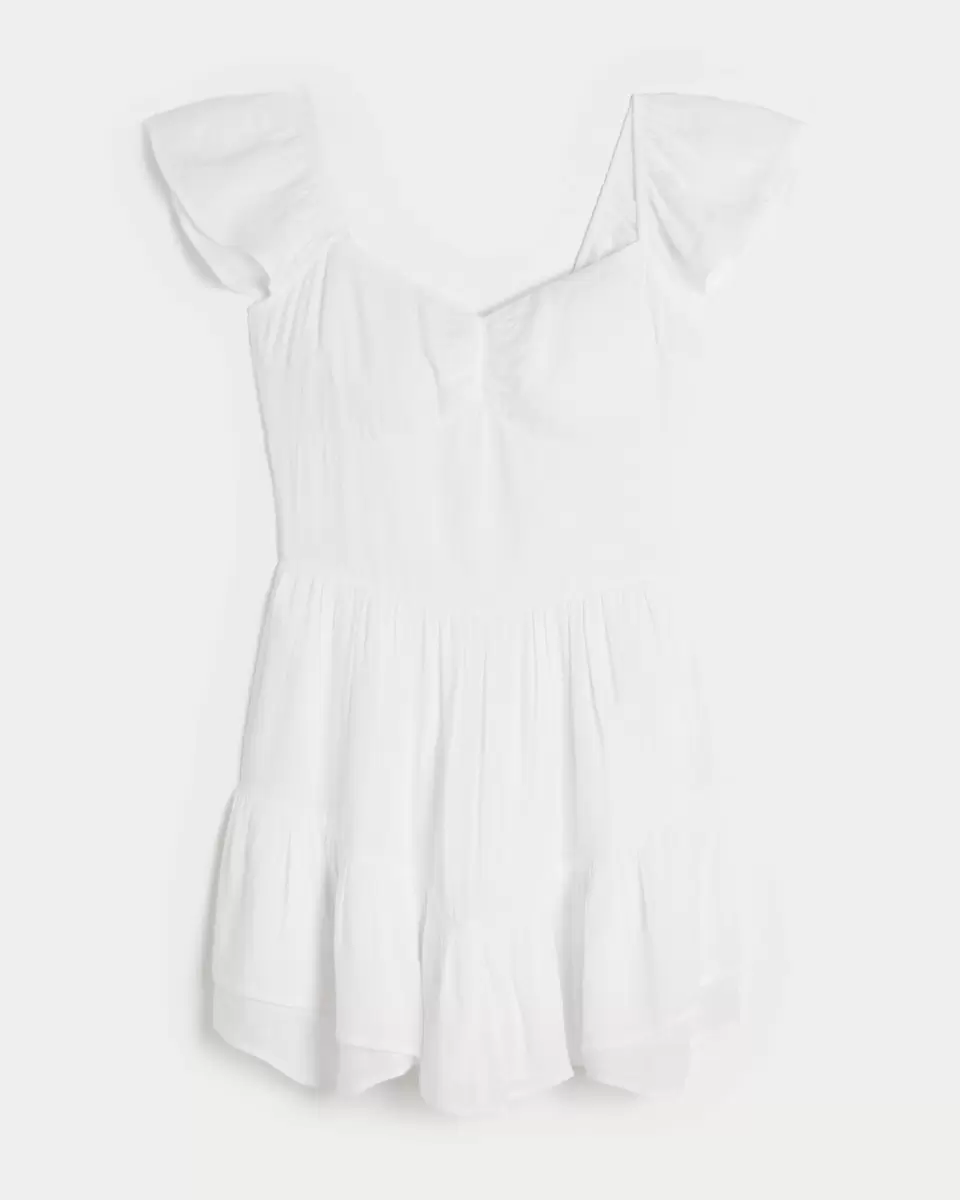 A flowy, super soft skort dress featuring flutter sleeves, a pinch bust detail and flowy skirt. Soft smocked back, pretty tiered hem detail. Imported.