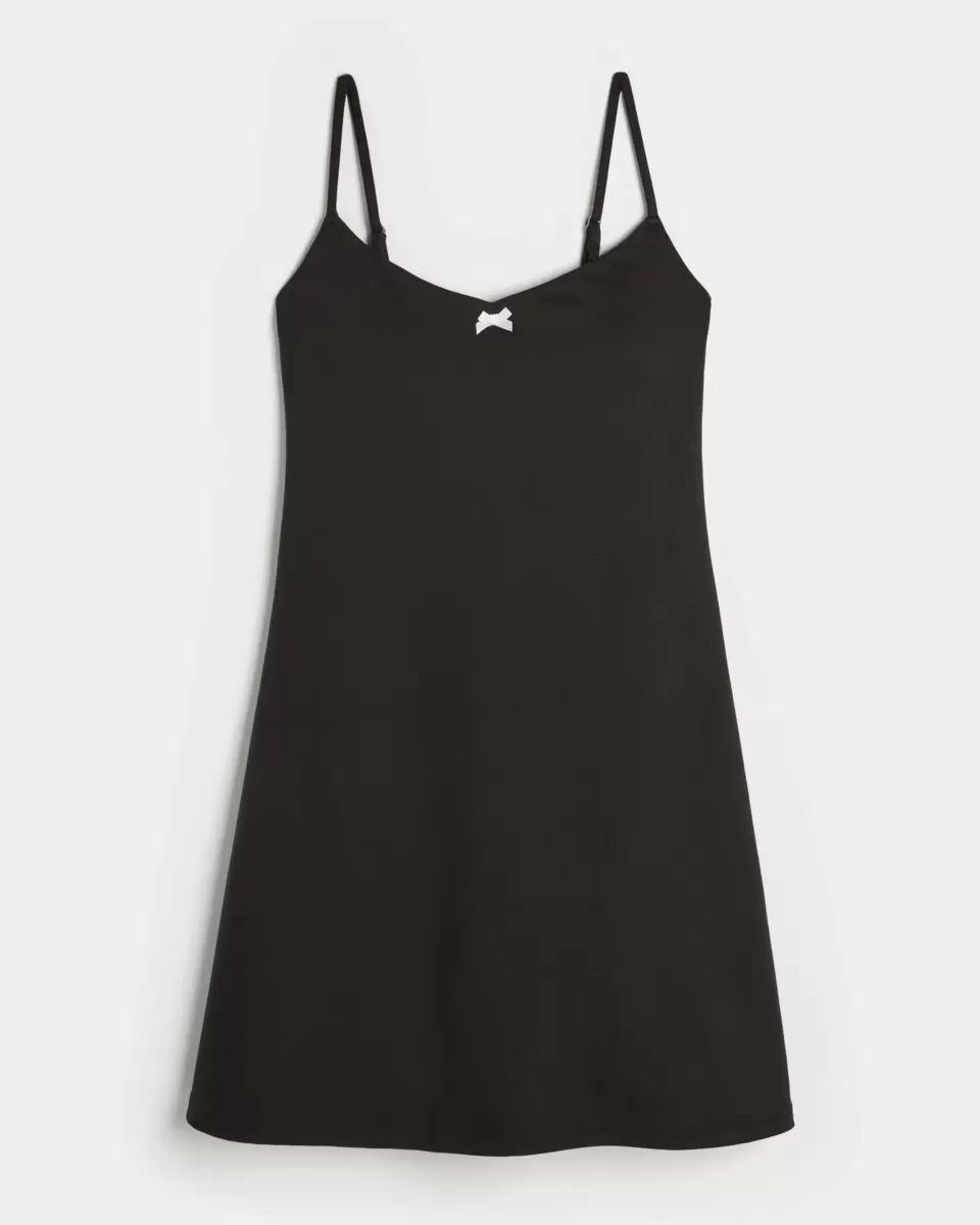 This cute and comfy gameday-style active dress features a bow detail at the center neckline. Adjustable straps. Imported.