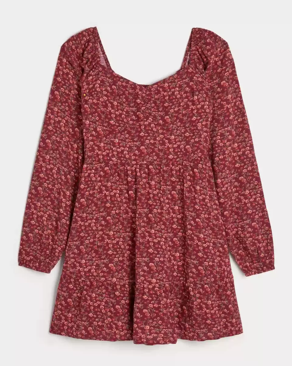 Super soft and pretty, this long-sleeve dress features pockets and a cinched bust. Sweetheart neckline. Imported.