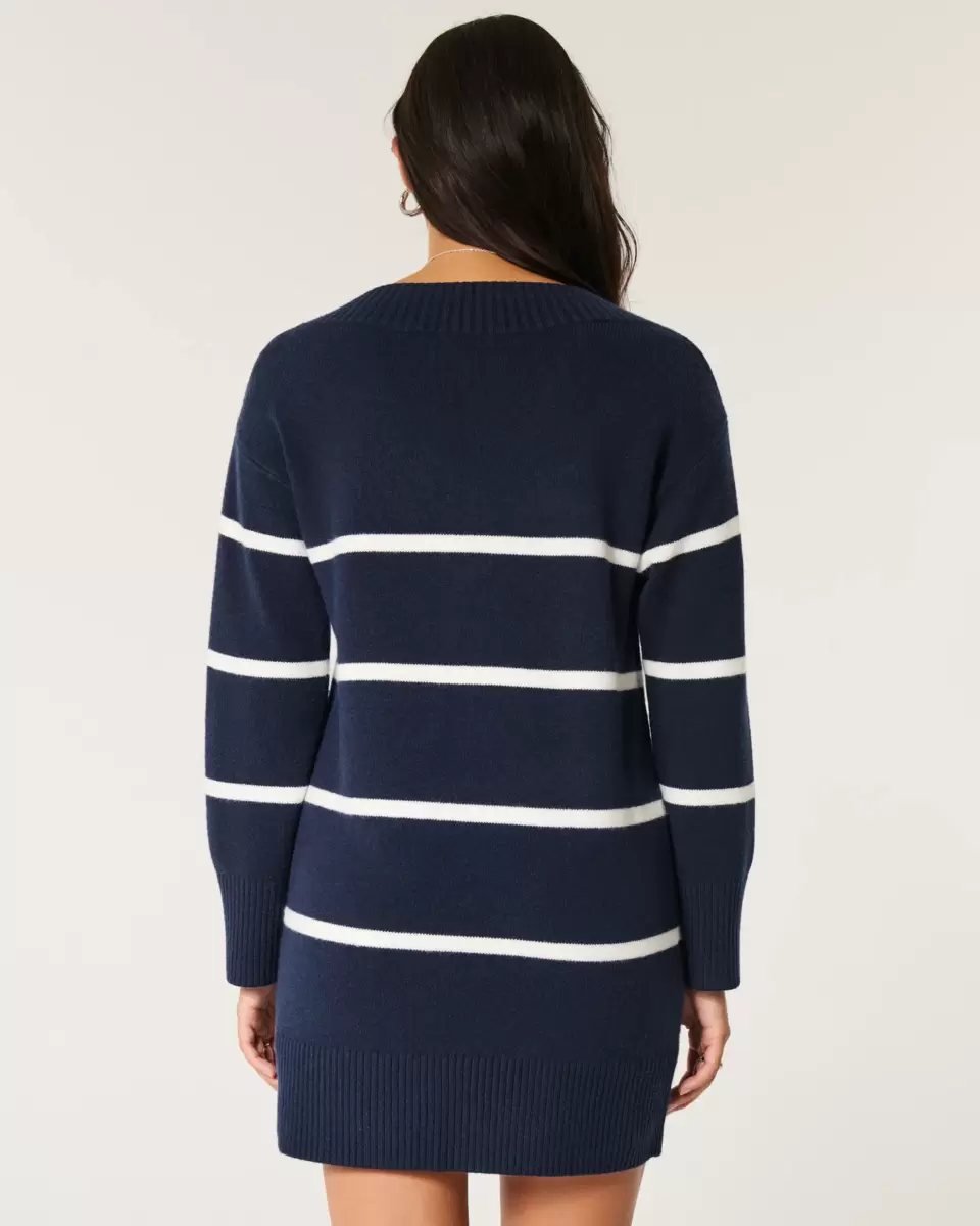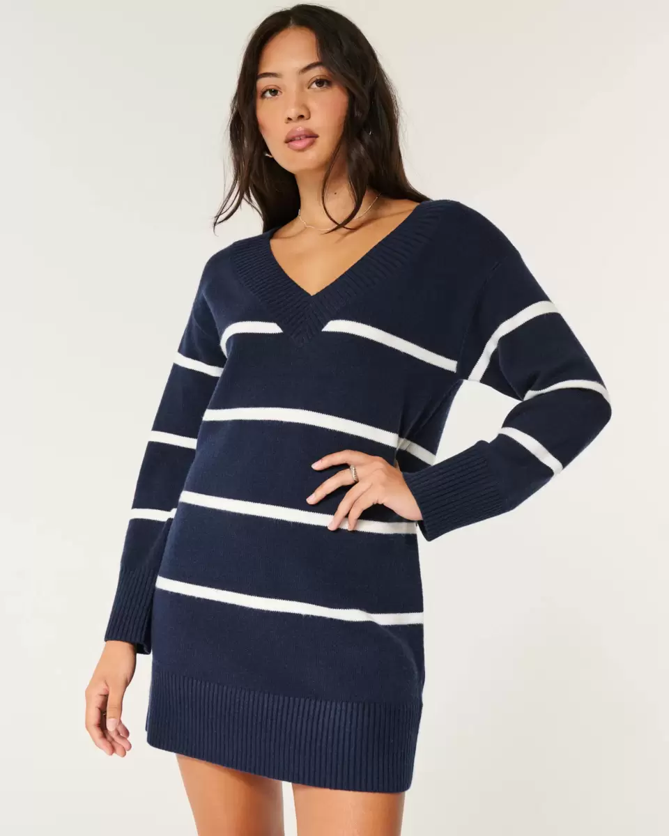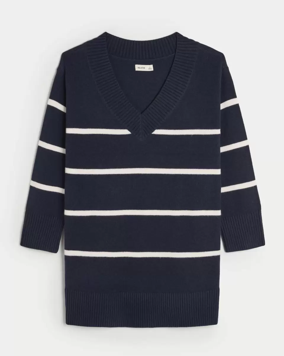 A super soft, slouchy sweater dress that can be worn on or off the shoulder. V-neckline, long sleeves, ribbed trims. Imported.