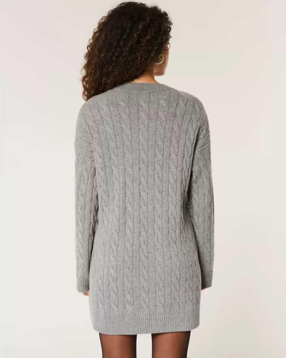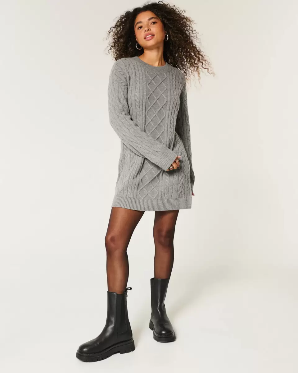 Oversized Cable-Knit Crew Sweater Dress