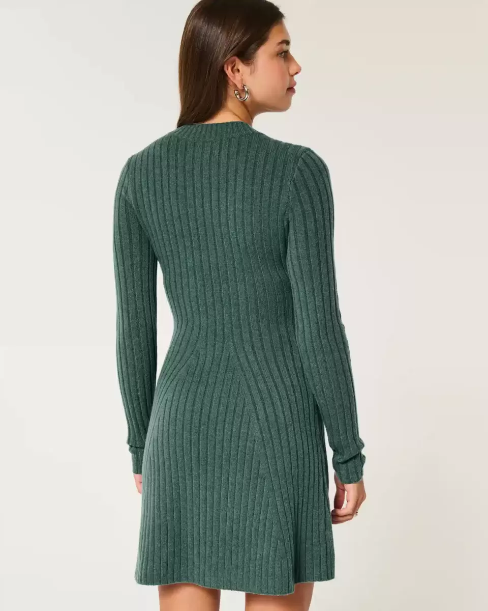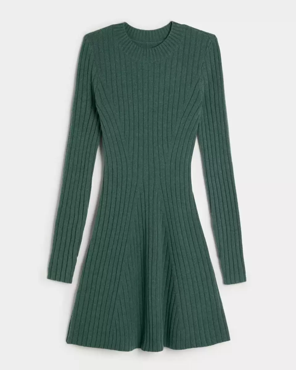 Super soft and comfortable, this long-sleeve mini dress features a crew neckline, ribbed texture and skater silhouette. Long sleeves, cozy sweater-knit fabric. Imported.