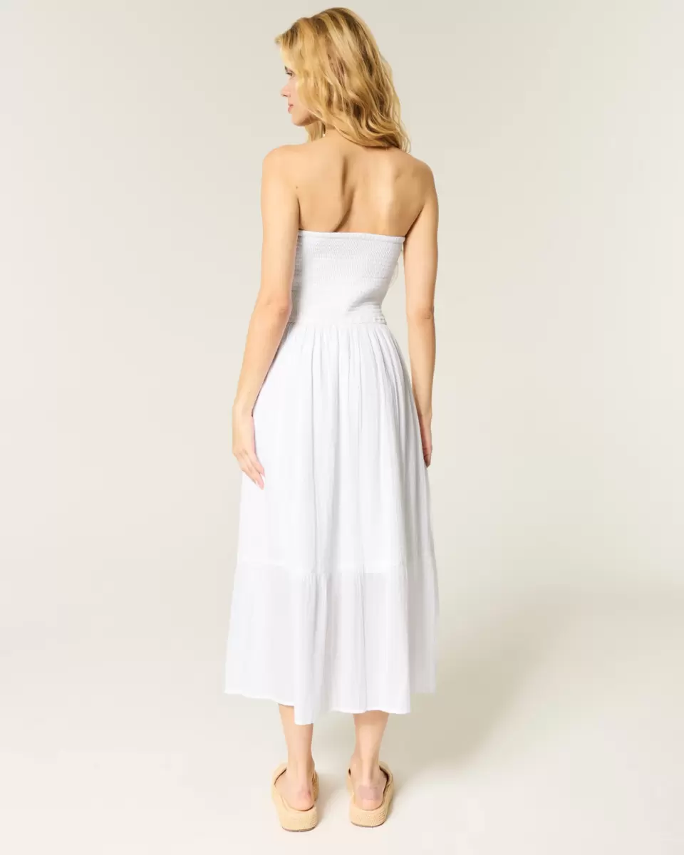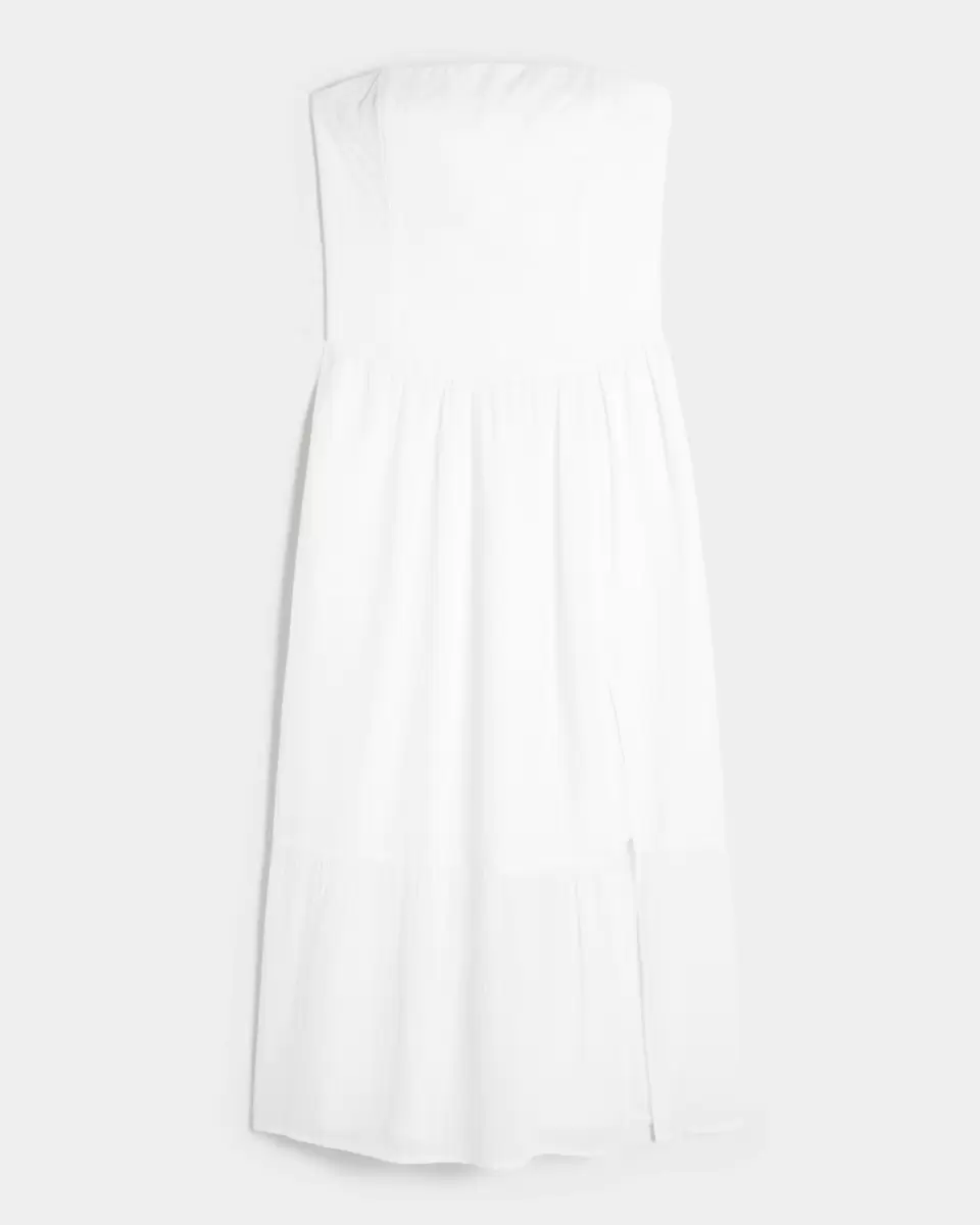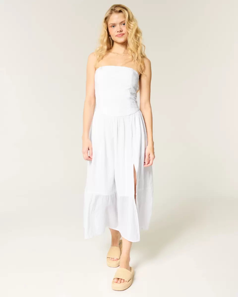 A flowy and super soft maxi-length dress with removable straps. Split hem detail, pretty embroidered details. Imported.