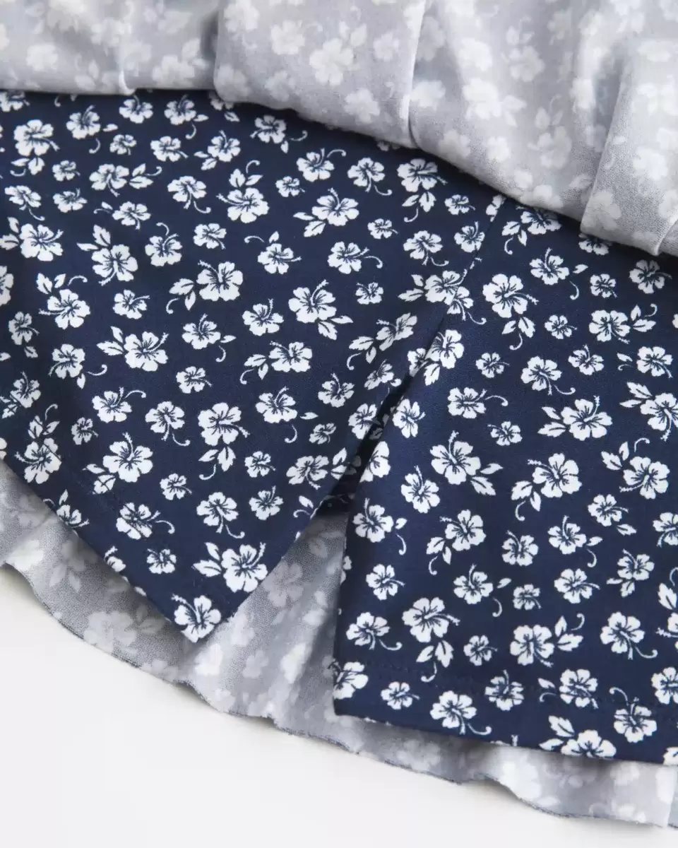 A cute and super soft skort dress in knit fabric with a tiered skirt and tie neckline. Slim through the bodice, built-in shorts. Imported.