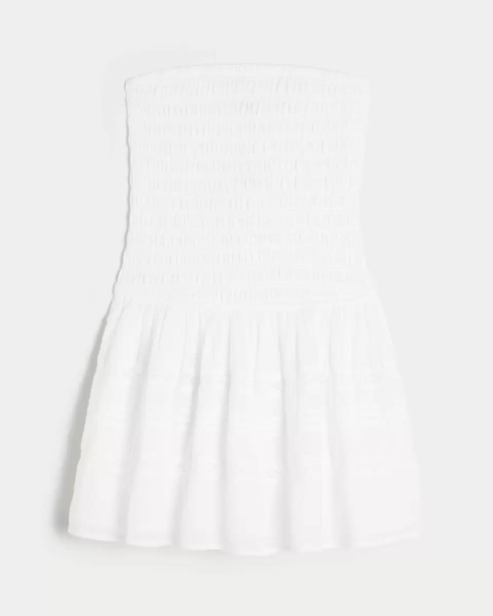 A super cute and easy strapless mini dress with a comfortable smocked bodice. Built-in shorts, removable straps, pockets. Imported.