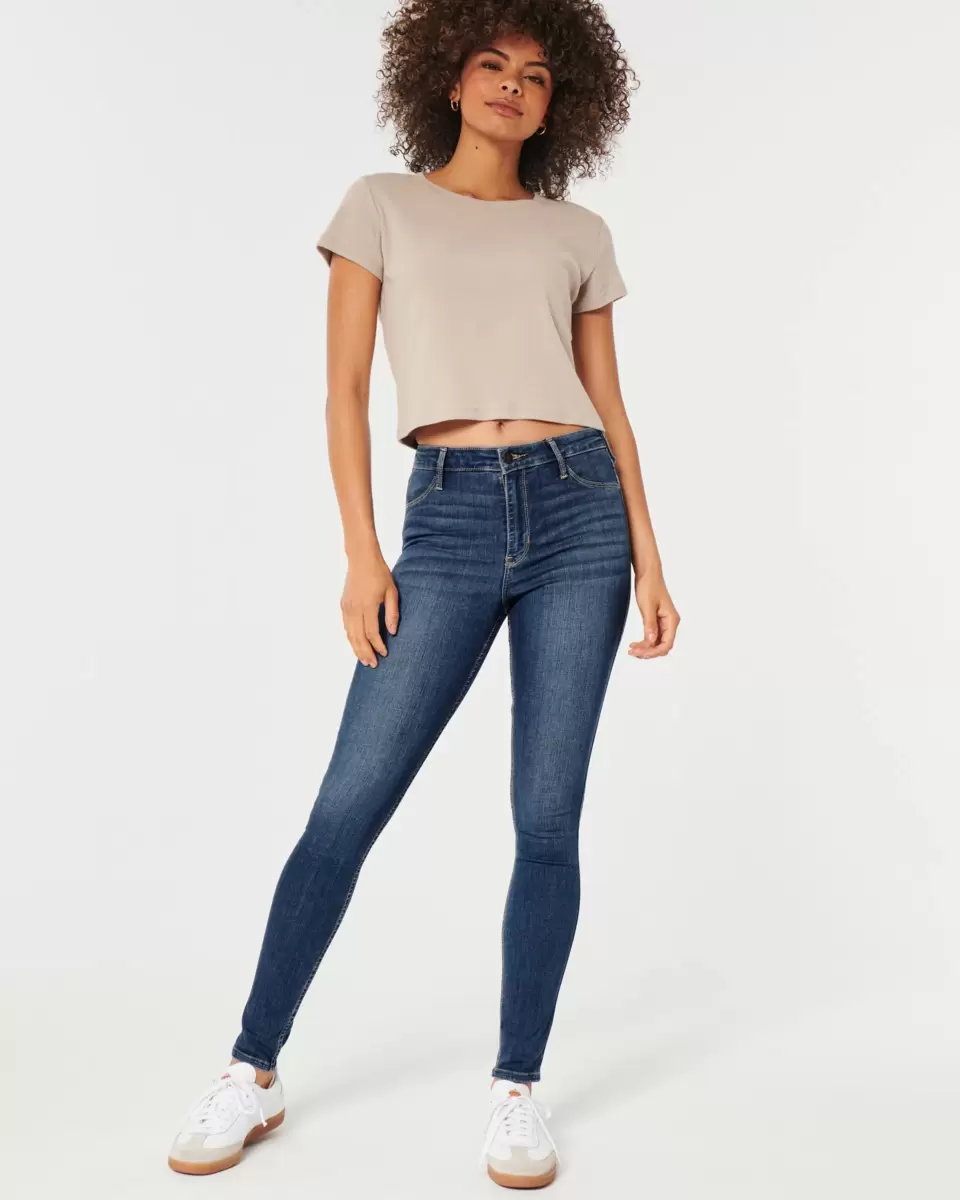 This style fits like a legging, looks like a jean. Designed in Advanced Stretch denim, featuring a flattering high-rise waist, dark wash, fading and whiskering. Imported.