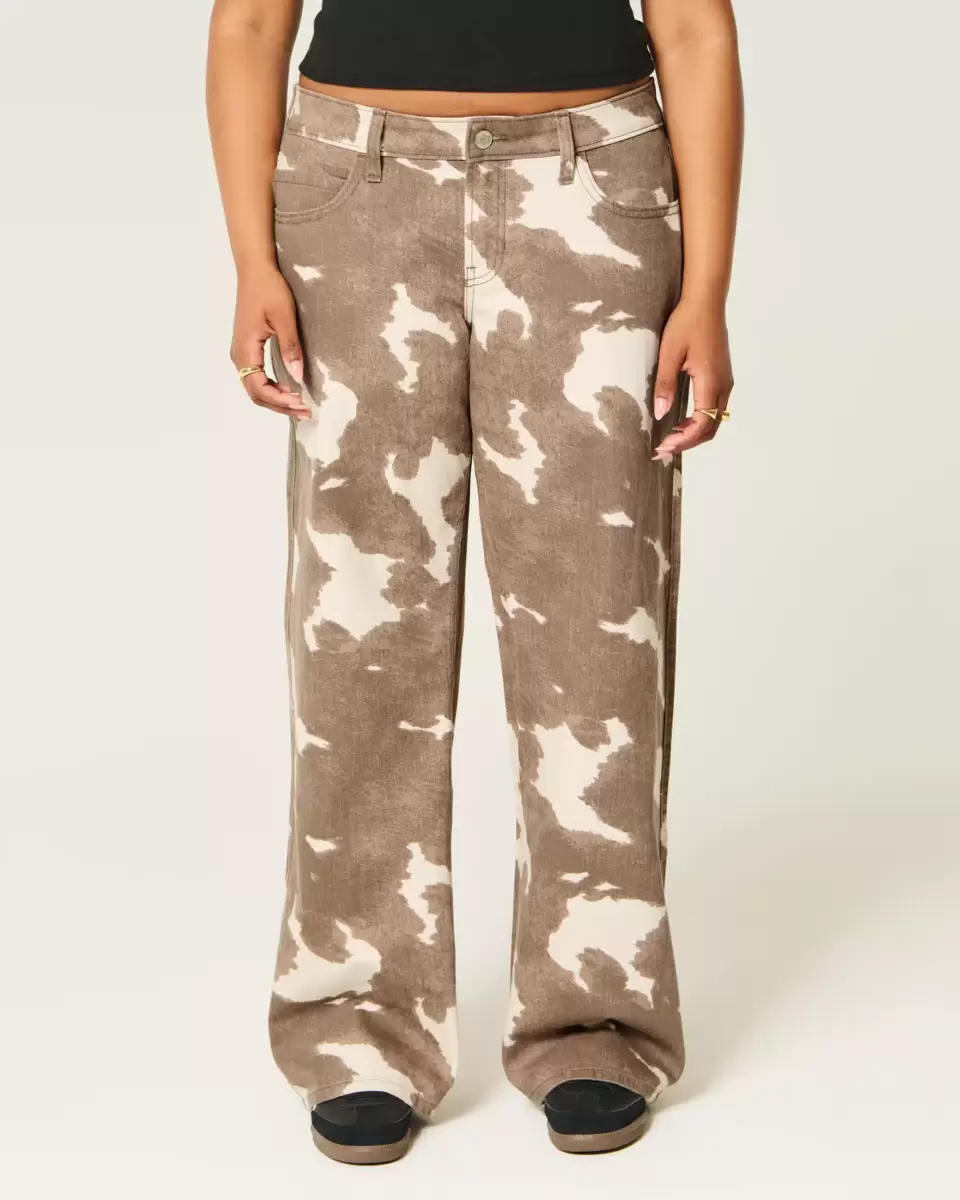 Low-Rise Cow Print Baggy Jeans