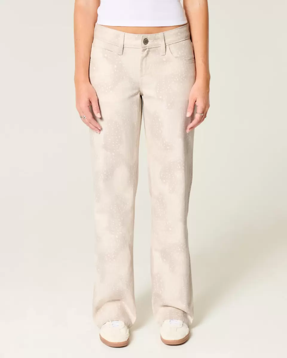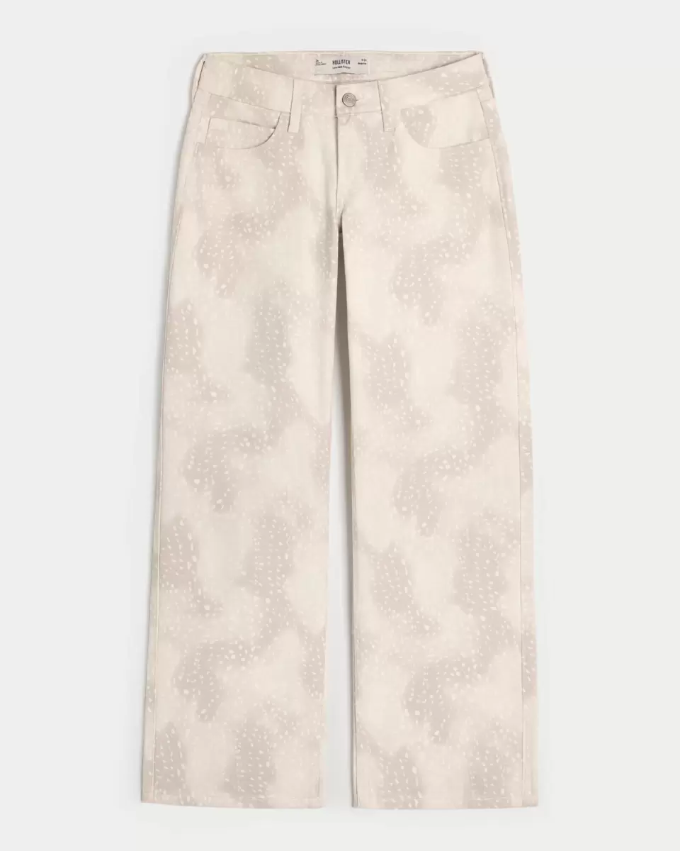 Comfortable denim jeans designed with a low-rise waist and baggy leg. All-over doe print. Imported.