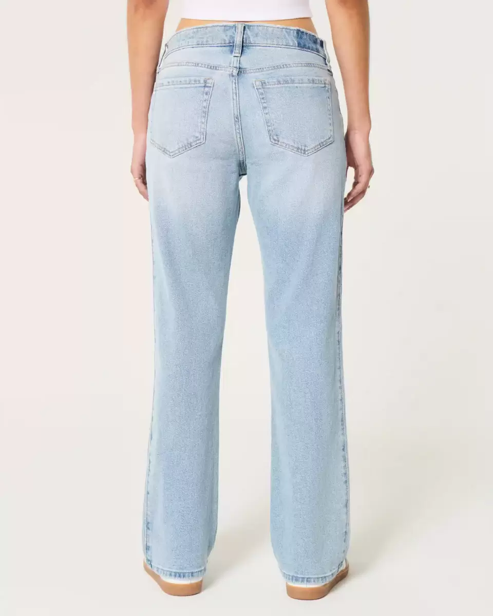 Comfortable jeans in a light wash, designed with a relaxed straight leg. Fading through the thigh, low-rise waist. Imported.