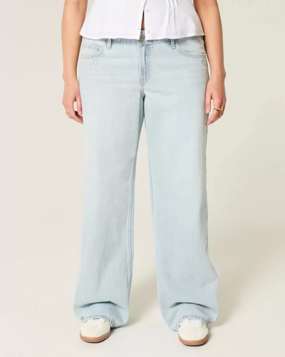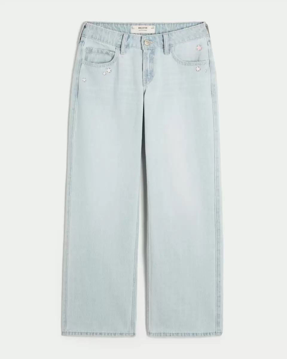 Low-Rise Light Wash Star Embroidery Baggy Jeans