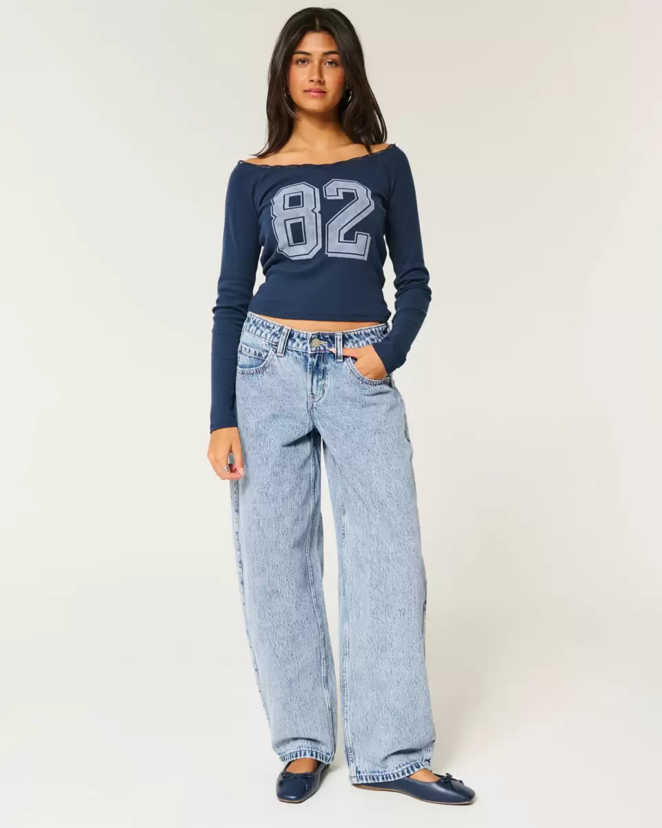 Ultra-comfortable denim jeans in a light wash designed with a baggy leg that tapers to a narrower hem. Flattering low-rise waist. Imported.
