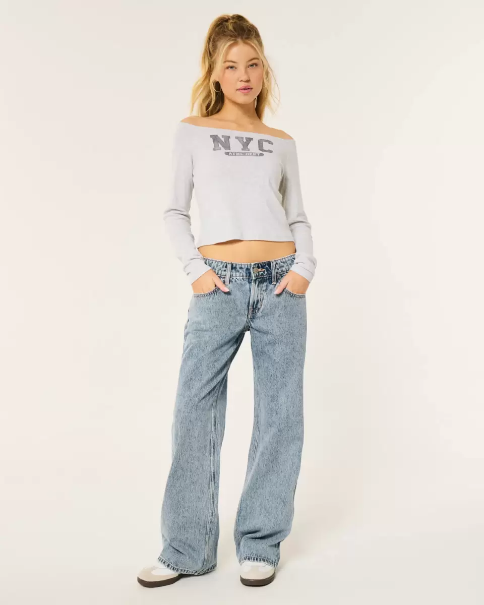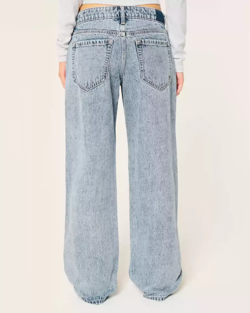 Your new favorite jeans are designed with a low-rise waist and comfortable baggy leg. Medium wash. Imported.