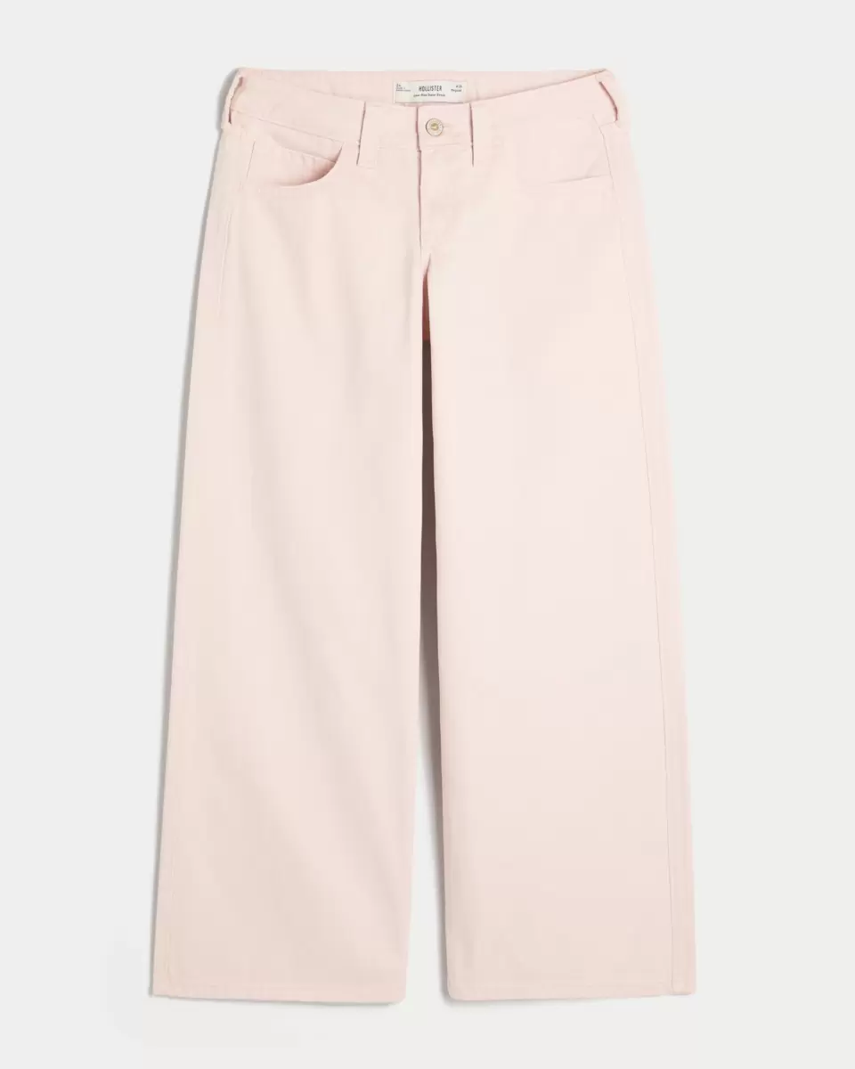 Ultra-comfortable jeans designed with a low-rise waist and super baggy leg. Pink denim. Imported.