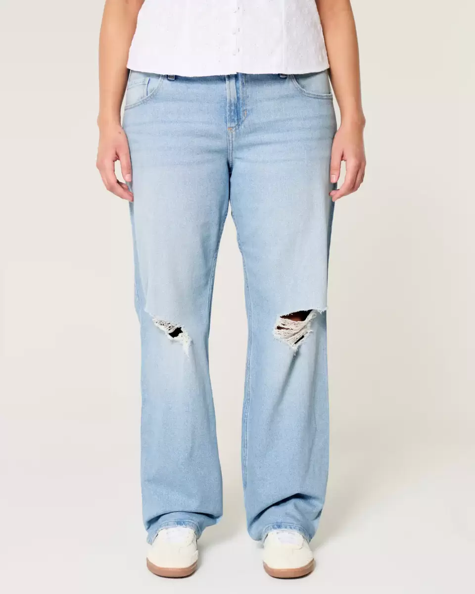 Low-Rise Ripped Light Wash Relaxed Straight Jeans