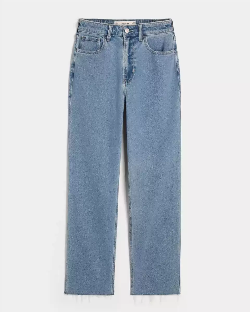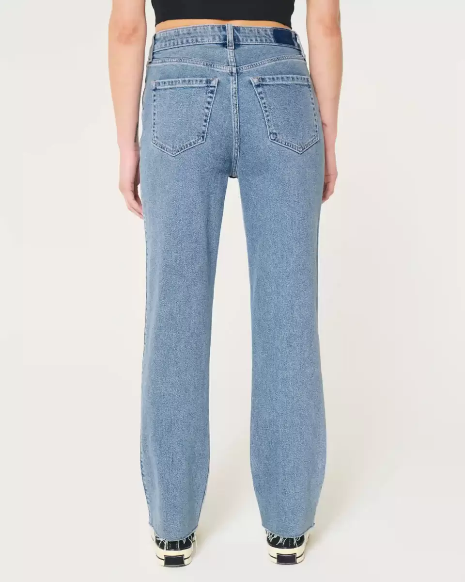 Classic jeans in a medium wash, designed with a straight leg and ultra high-rise waist. Ultra-comfortable Vintage Stretch denim. Imported.