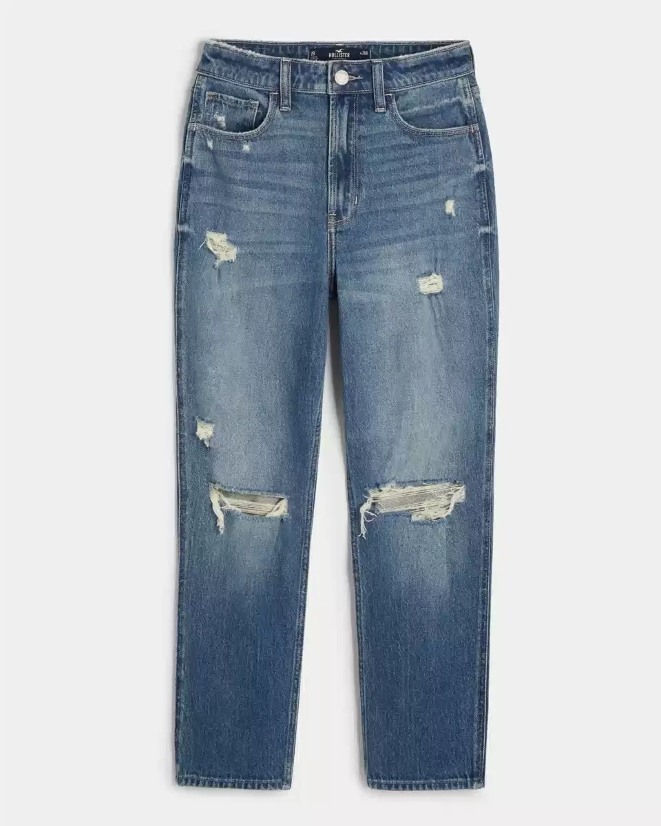 Relaxed through the thigh and tapered from knee to ankle, these ripped mom jeans feature Vintage Stretch denim in a medium wash with ripped detailing, fading and whiskering. Can be worn cuffed or uncuffed! Imported.
