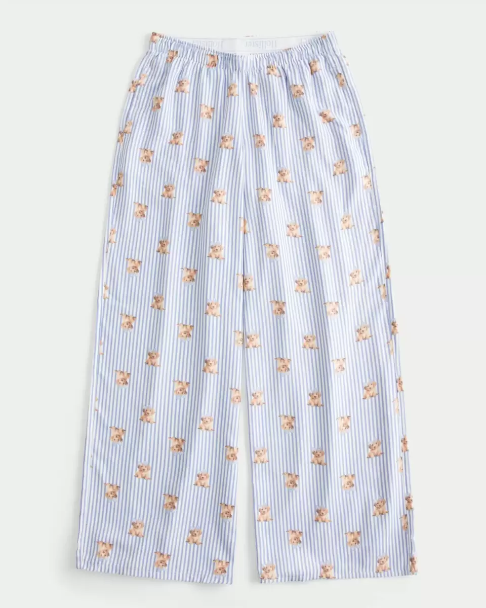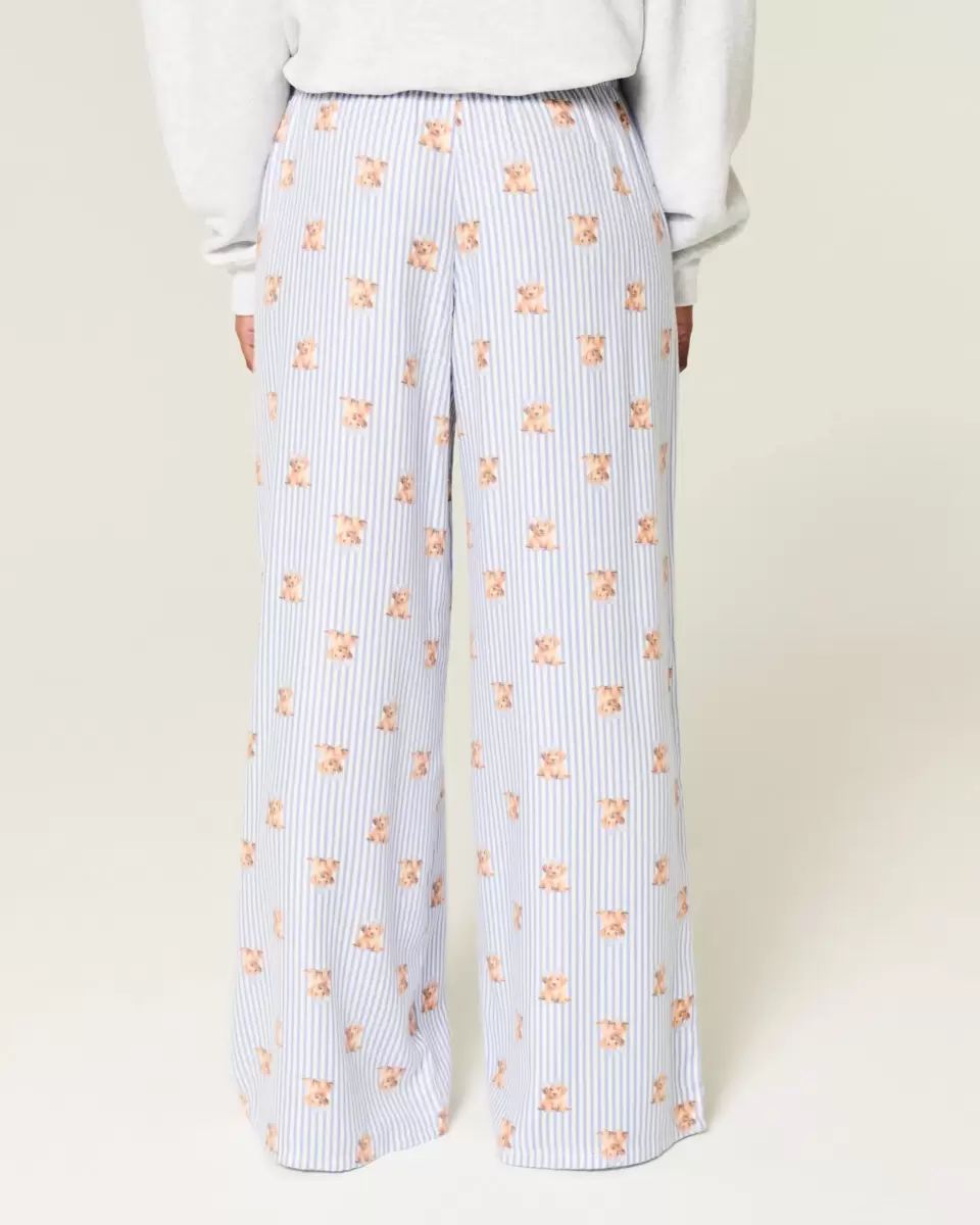 Super soft flannel pants designed with a banded adjustable-rise waist and baggy leg. Pockets, cute all-over puppy graphic pattern, foldover waist with interior logo details. Imported.