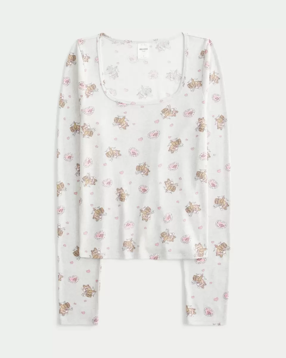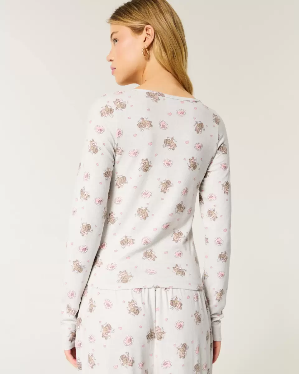 A super soft and cozy sleep top with long sleeves and all-over bear cupid graphic pattern. Easy Fit. Imported.