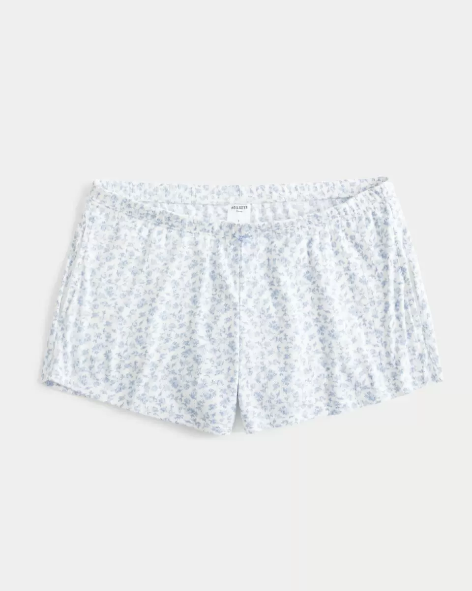 A cute and cozy shortie in super soft pointelle fabric with a banded adjustable-rise waist and pockets. Bow detail at center waist. Imported.