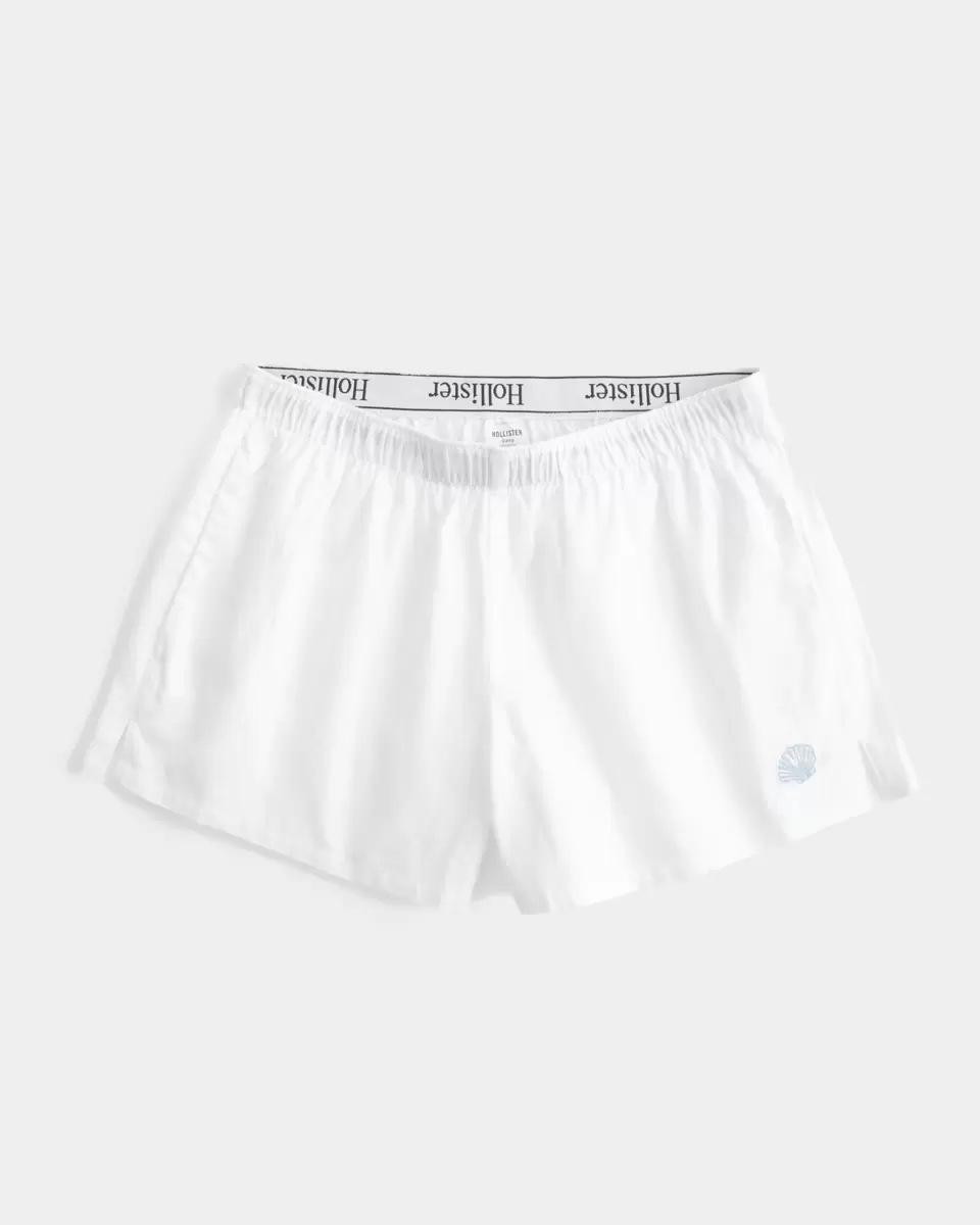 Cute and comfy boxer shorts designed with soft banded waist with inner logo details. Soft Oxford fabric, adjustable-rise waist, pockets, embroidered shell detail.
