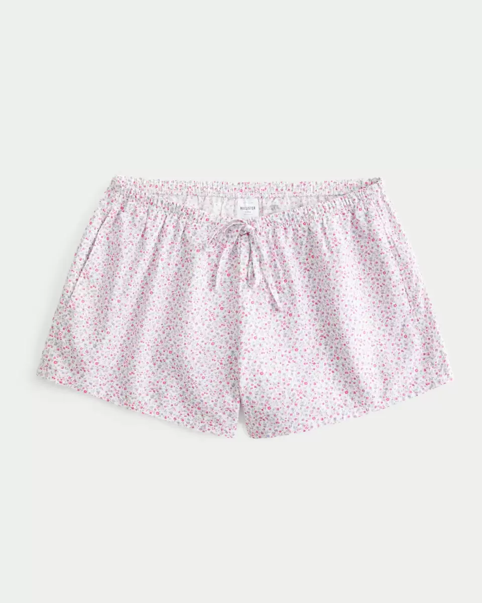Super soft sleep shorts in Oxford cotton with a cute pattern and drawstring waist. Adjustable rise, pockets. Imported.