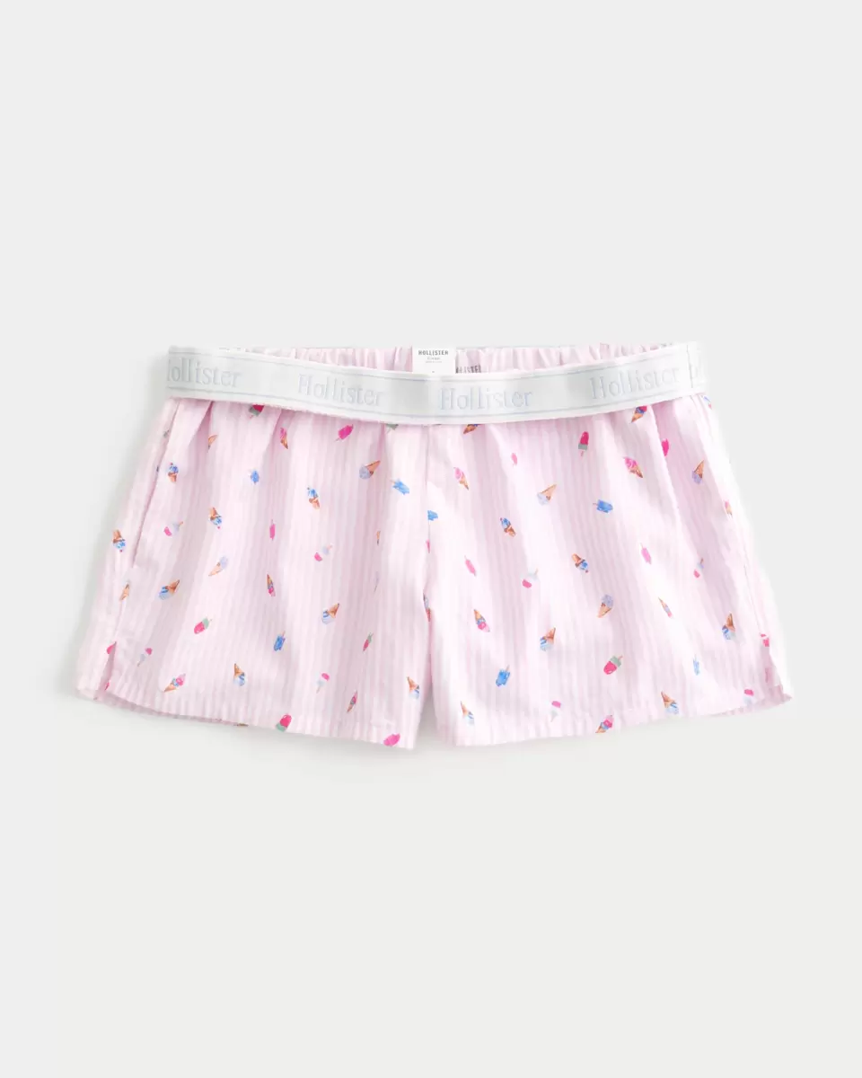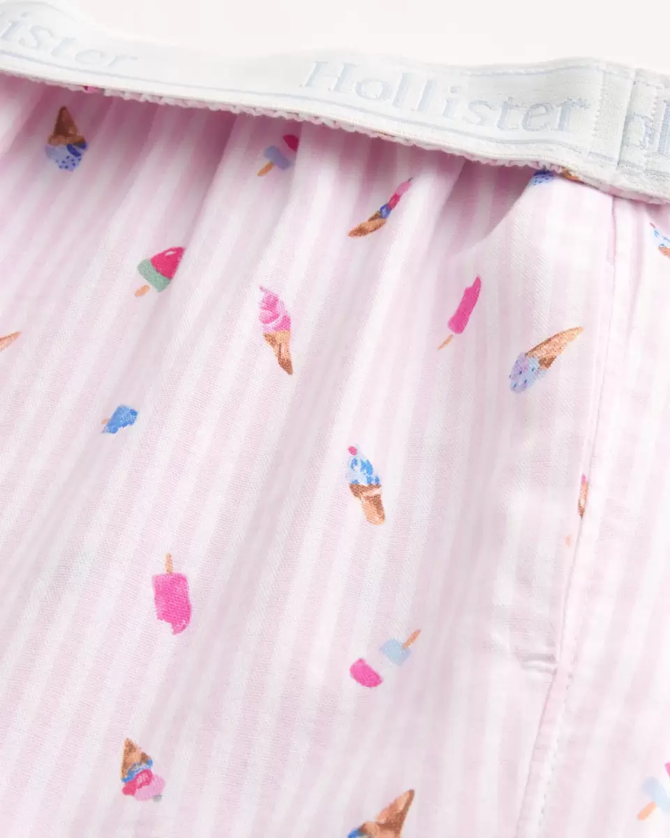 Cute boxer shorts in soft Oxford fabric, designed with a banded adjustable-rise waist and pockets. All-over ice cream and popcicle graphic pattern, interior logo details at waist. Imported.