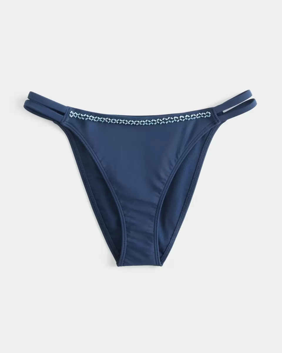 A cute bikini bottom in soft swim fabric, designed with cheeky coverage and double side straps. Bead details. Imported.