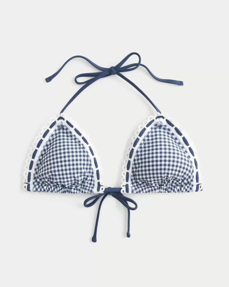 Crochet-Style Trim Halter Triangle Bikini Top