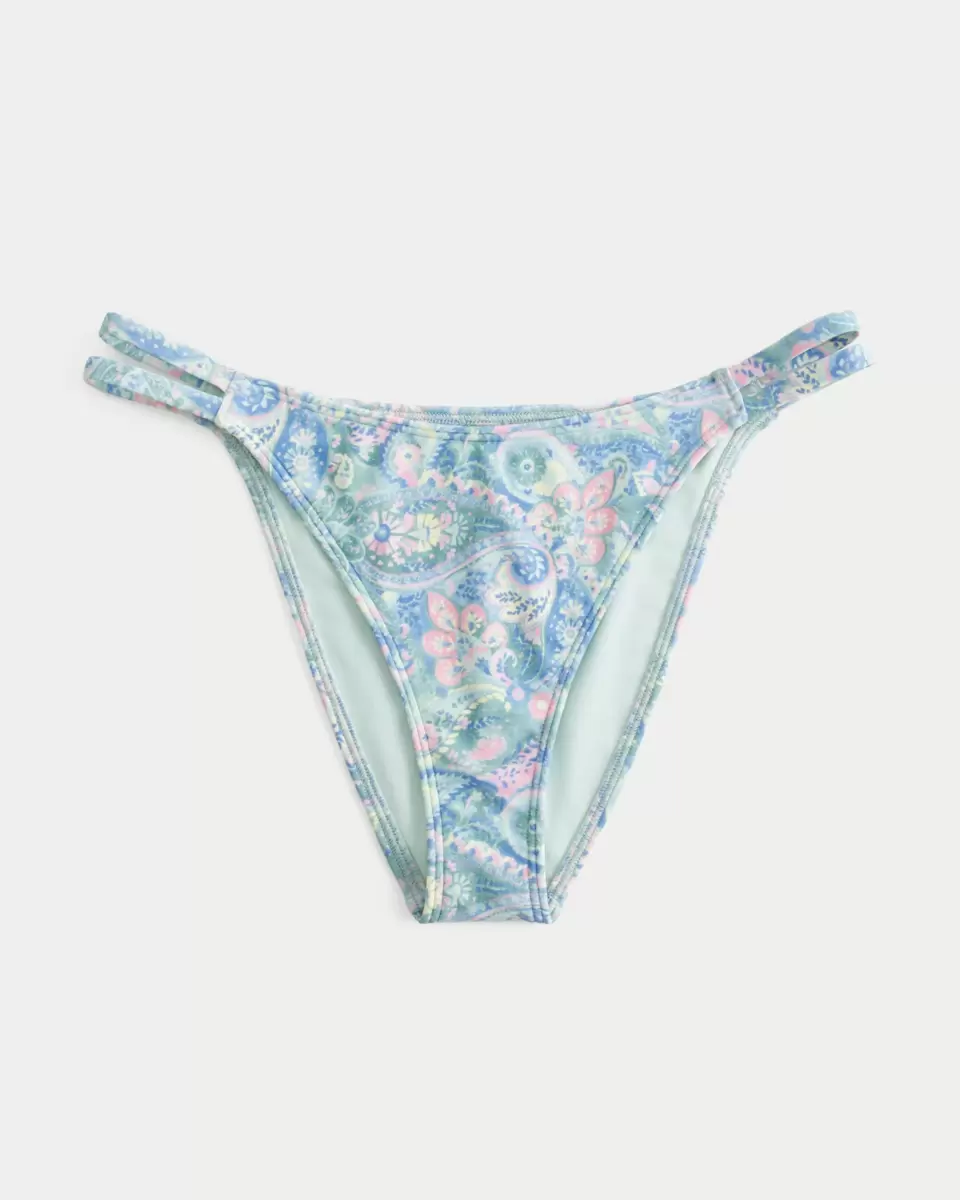 A cute bikini bottom in soft swim fabric, designed with cheeky coverage and double side straps. Imported.