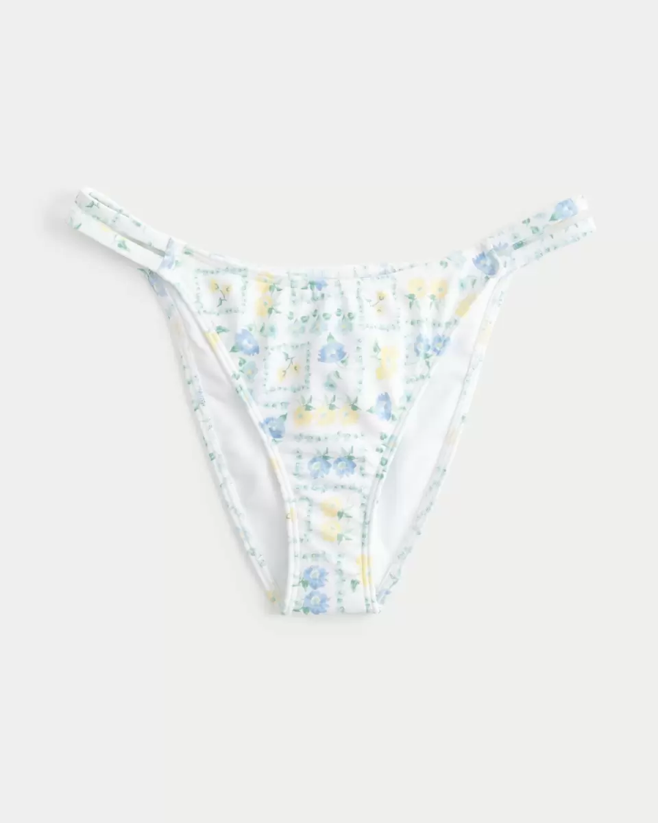 A cute bikini bottom in soft swim fabric, designed with cheeky coverage and double side straps. Imported.