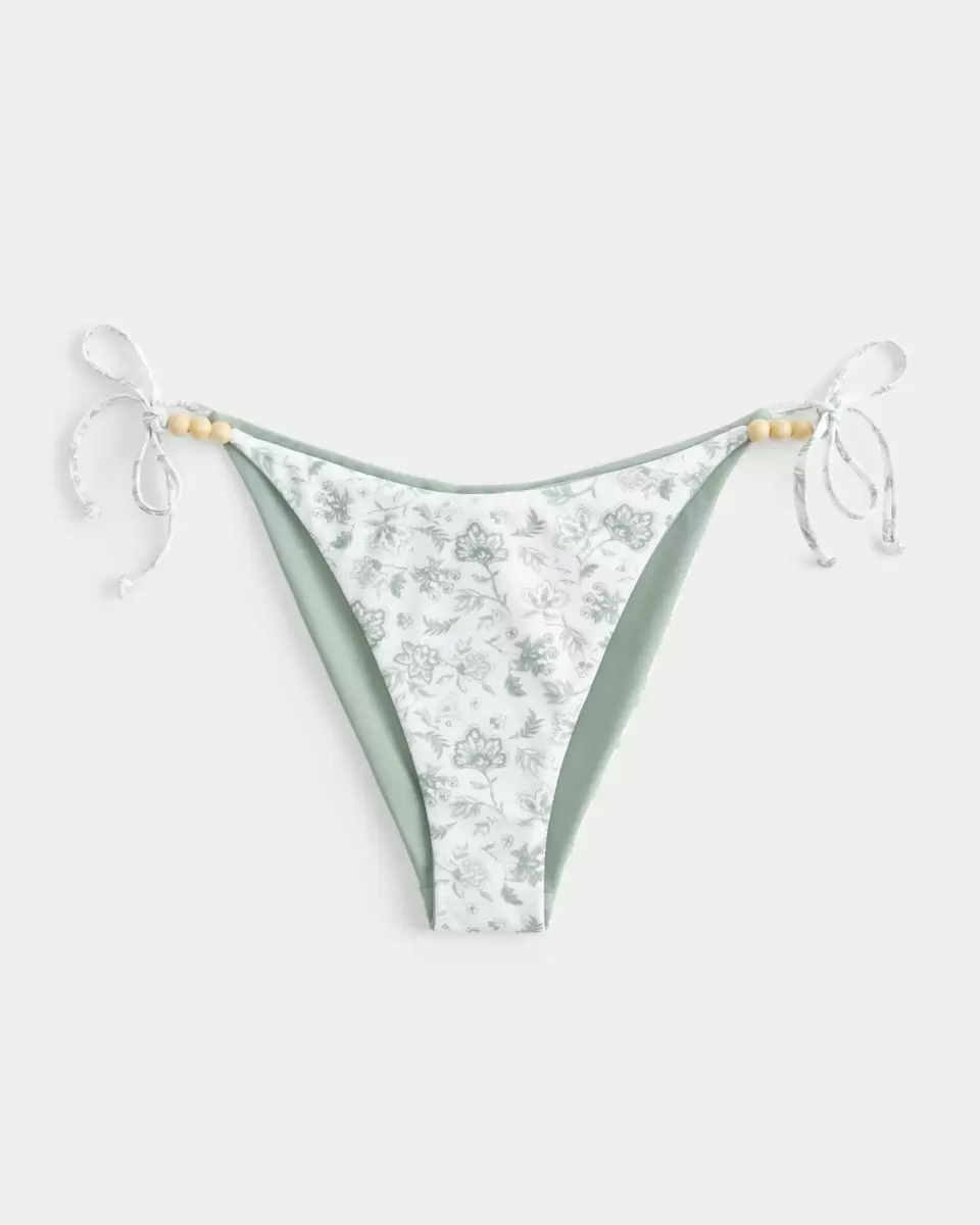 A cute reversible bikini bottom with side ties and bead details. Cheeky coverage. Imported.