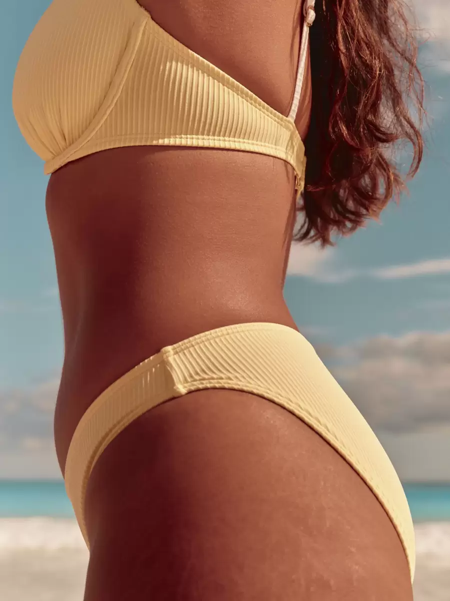 This cute bikini bottom is made with soft ribbed swim fabric. Classic bikini coverage. Imported.