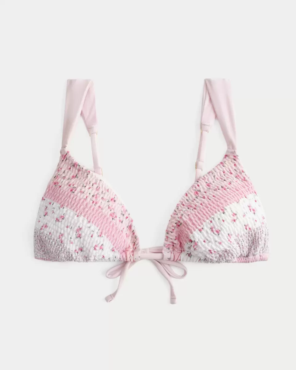 Cute and comfy, this bikini top is made with soft smocked swim fabric. Tie closure, over-the-shoulder straps, removable padding, triangle silhouette. Imported.